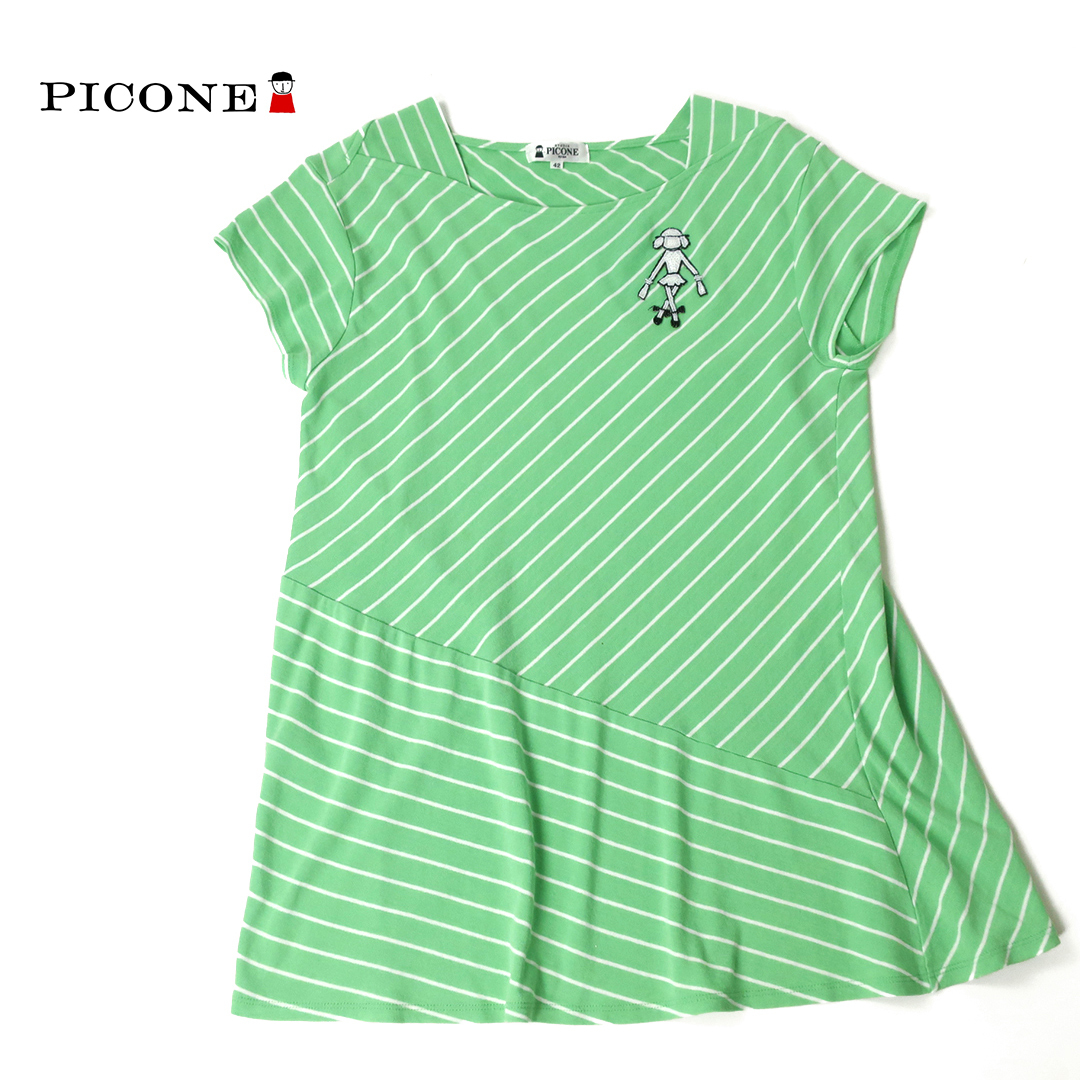 PICONE ピッコーネ チョークストライプ チュニックシャツ サマースウェット生地 グリーン 42