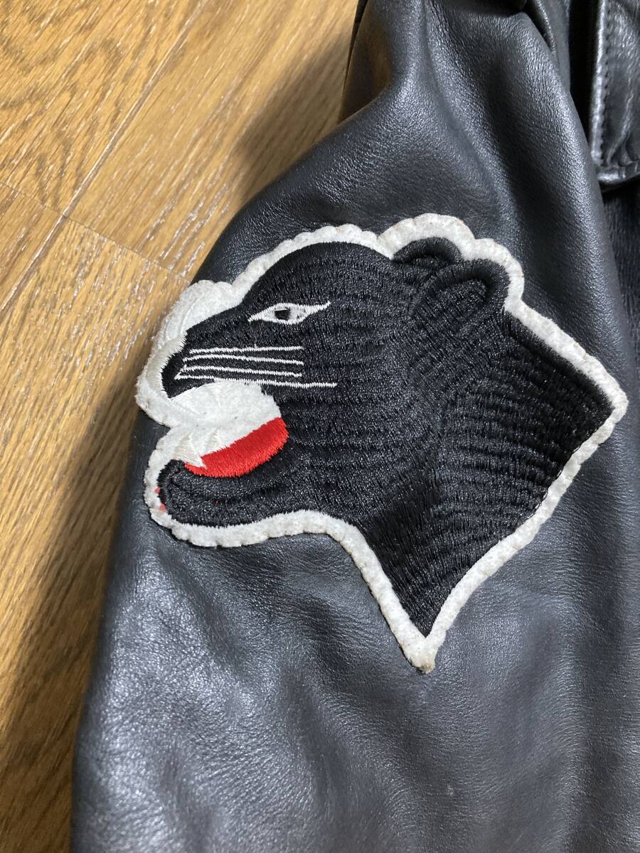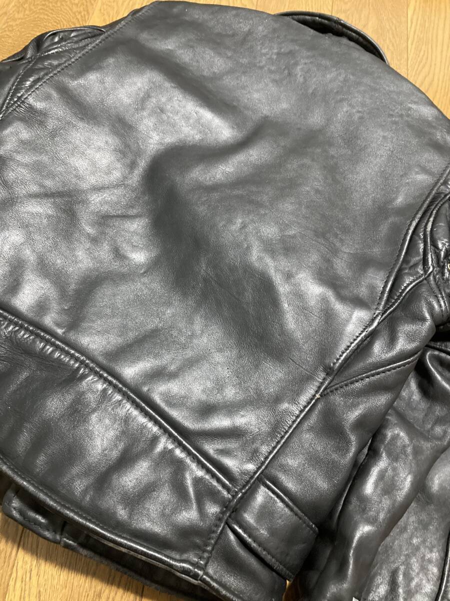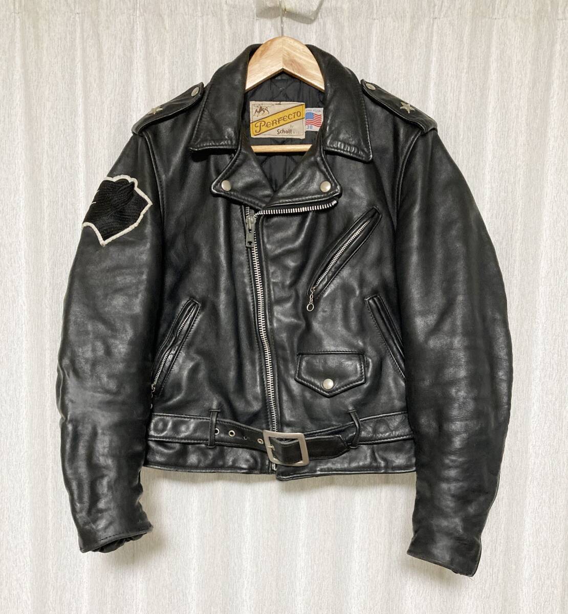 [Schott] 牛タグ 613 ONE STAR ワンスター ブラックパンサーワッペンカスタム ダブルライダース レザージャケット 38 本革 USA製 ショット