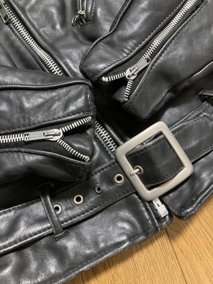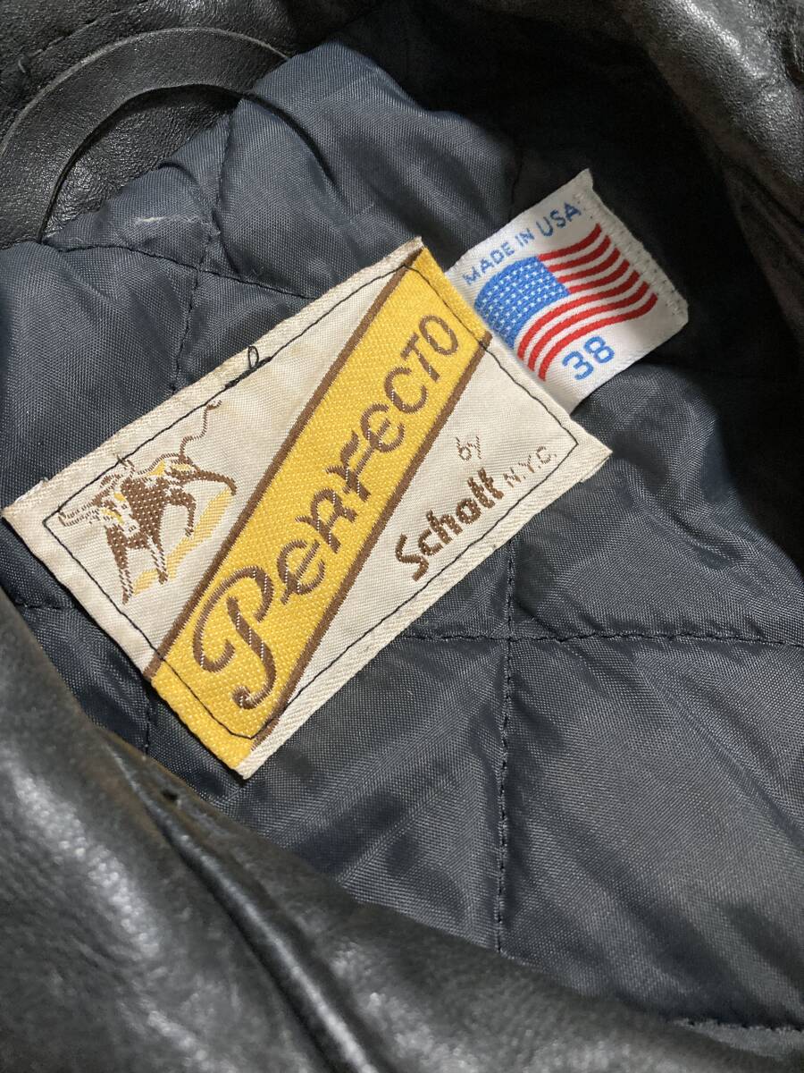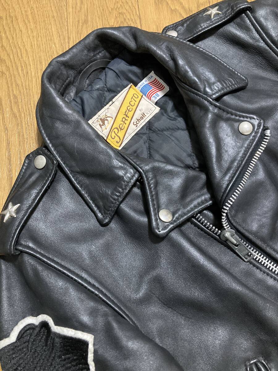 [Schott] 牛タグ 613 ONE STAR ワンスター ブラックパンサーワッペンカスタム ダブルライダース レザージャケット 38 本革 USA製 ショット
