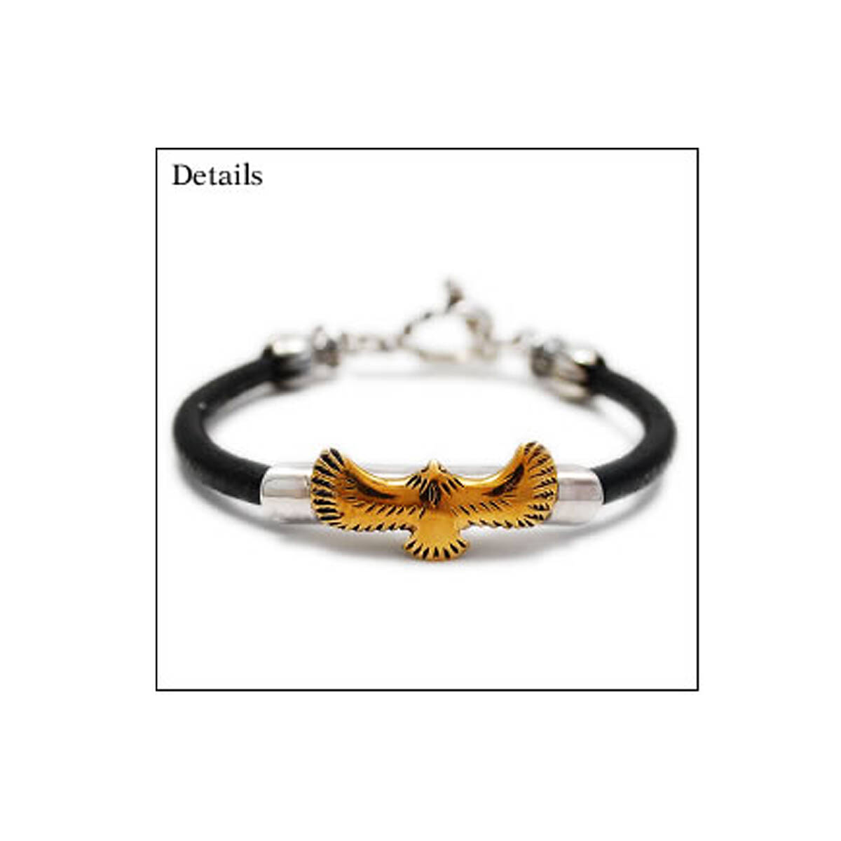 真鍮イーグルTロックレザー925シルバーブレスレット 925刻印あり EC-BL006B