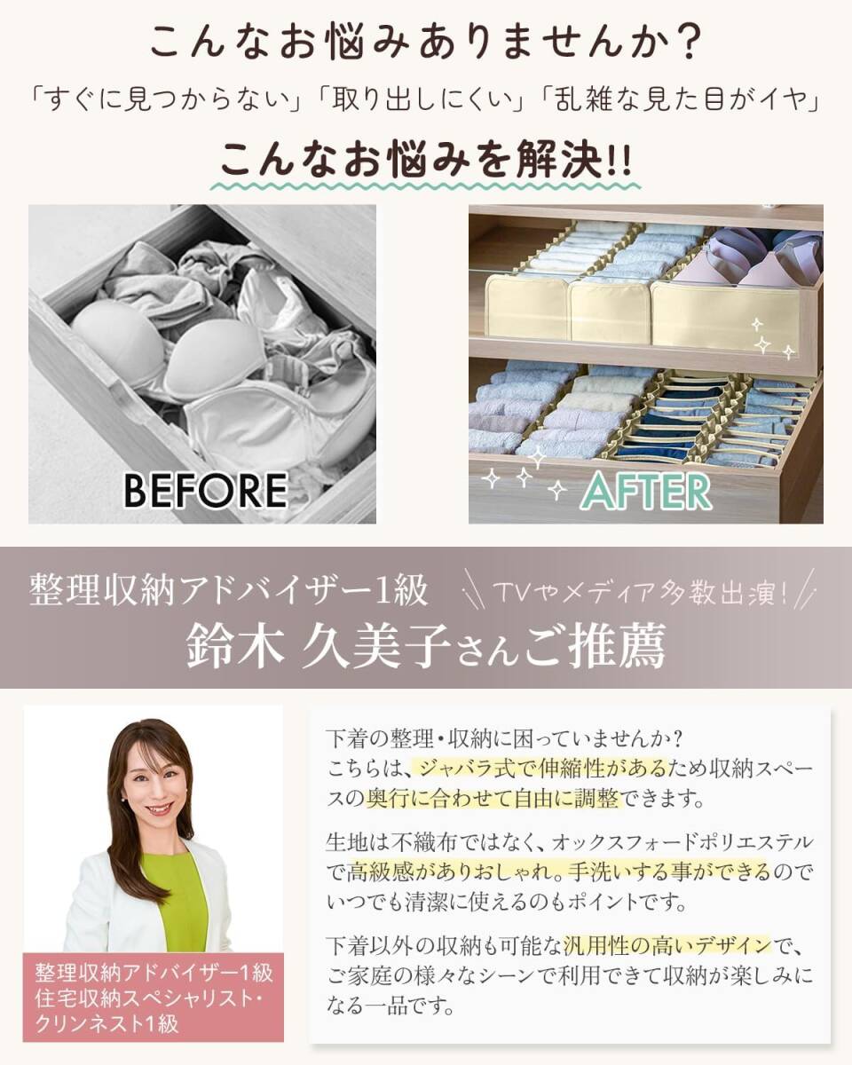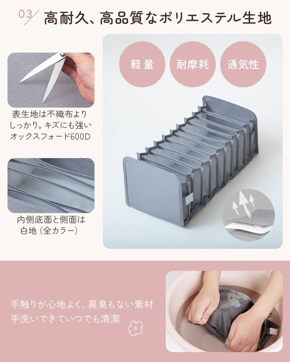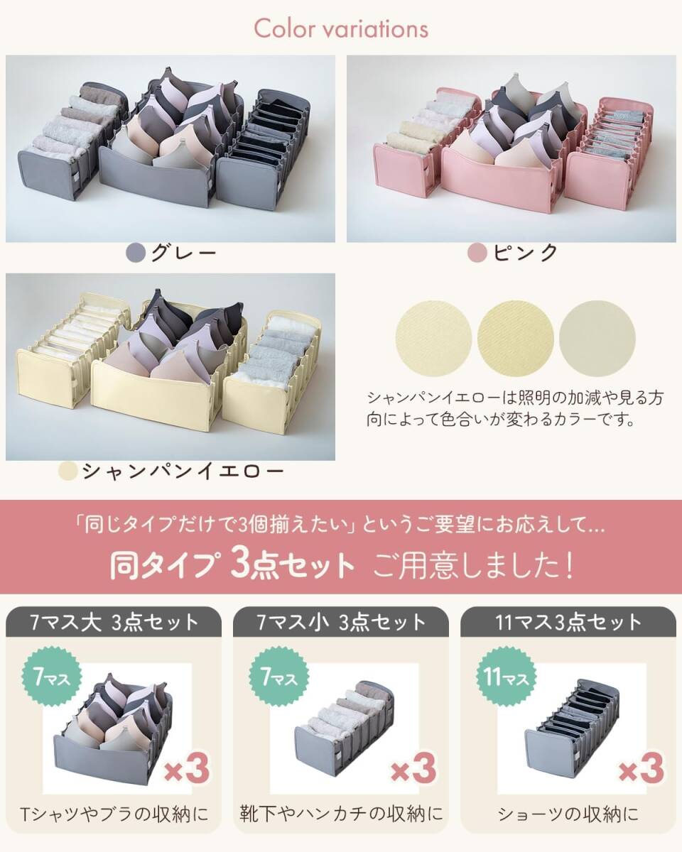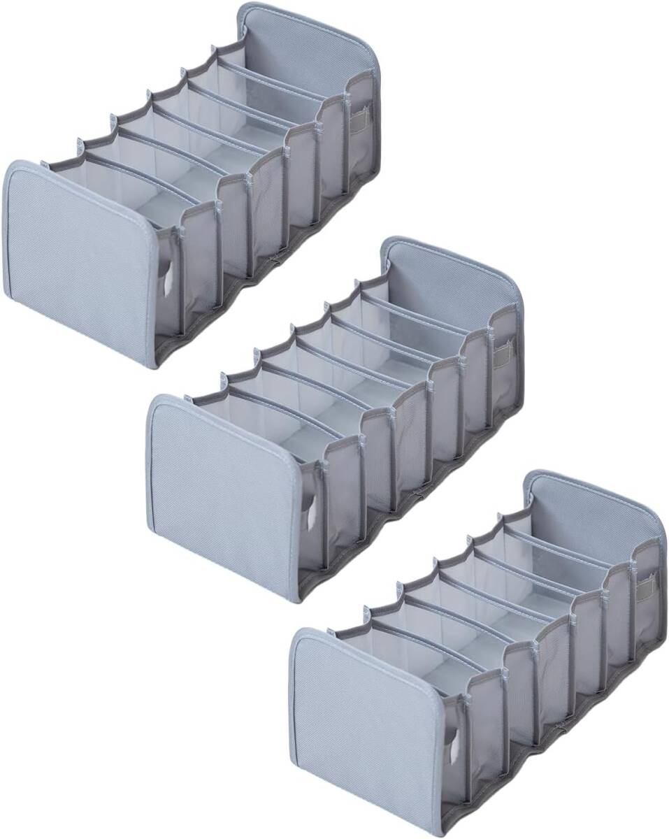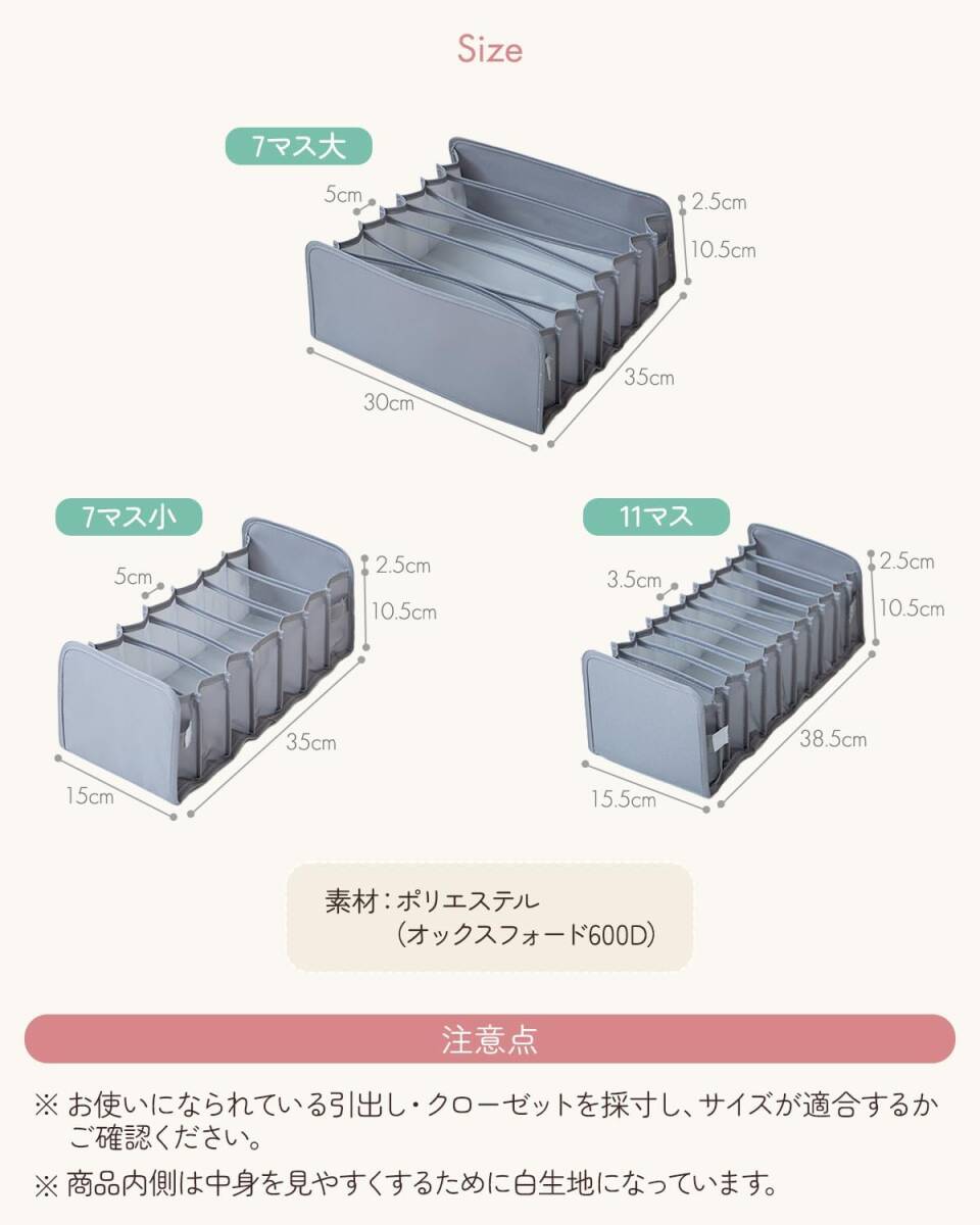 下着収納ボックス 下着収納ケース【整理収納のプロ推薦 引き出しに合わせて調整できる伸縮式】衣類 靴下 小物 収納 引出し 仕切り ケース クローゼット 引出し 棚 おしゃれ 防塵 防湿 通気 収納用品 3点セット (グレー, 7マス小3点セット)