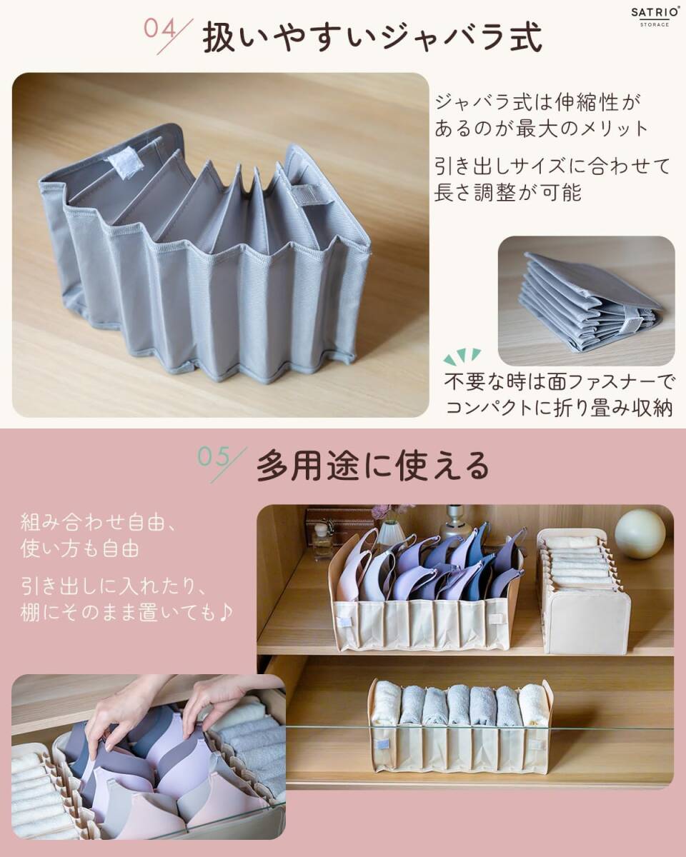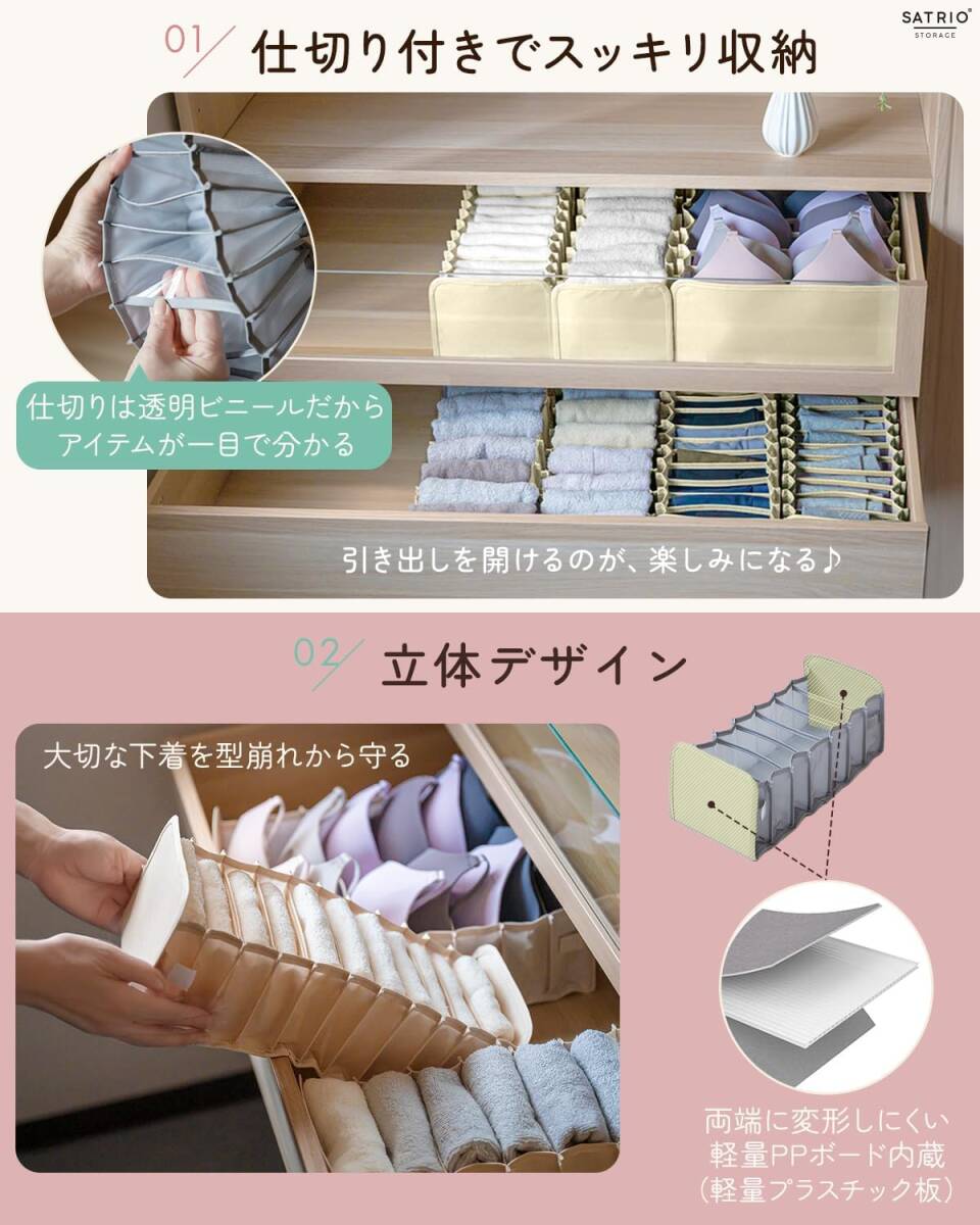 【整理収納のプロ推薦 】Satrioボックス型下着収納ケース3点セット。多機能、大容量、タンスやチェスト内の整理整頓に便利な収納ケース。組み合わせも使い方も自由。下着、靴下、Tシャツ、レギンス、タオル等の収納に最適。アイディア次第で下着以外(小物入れ、化粧品等)の収納にも◎