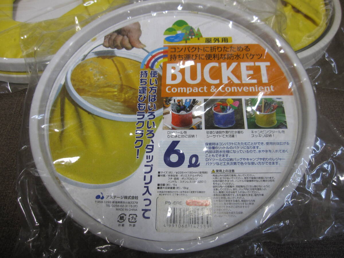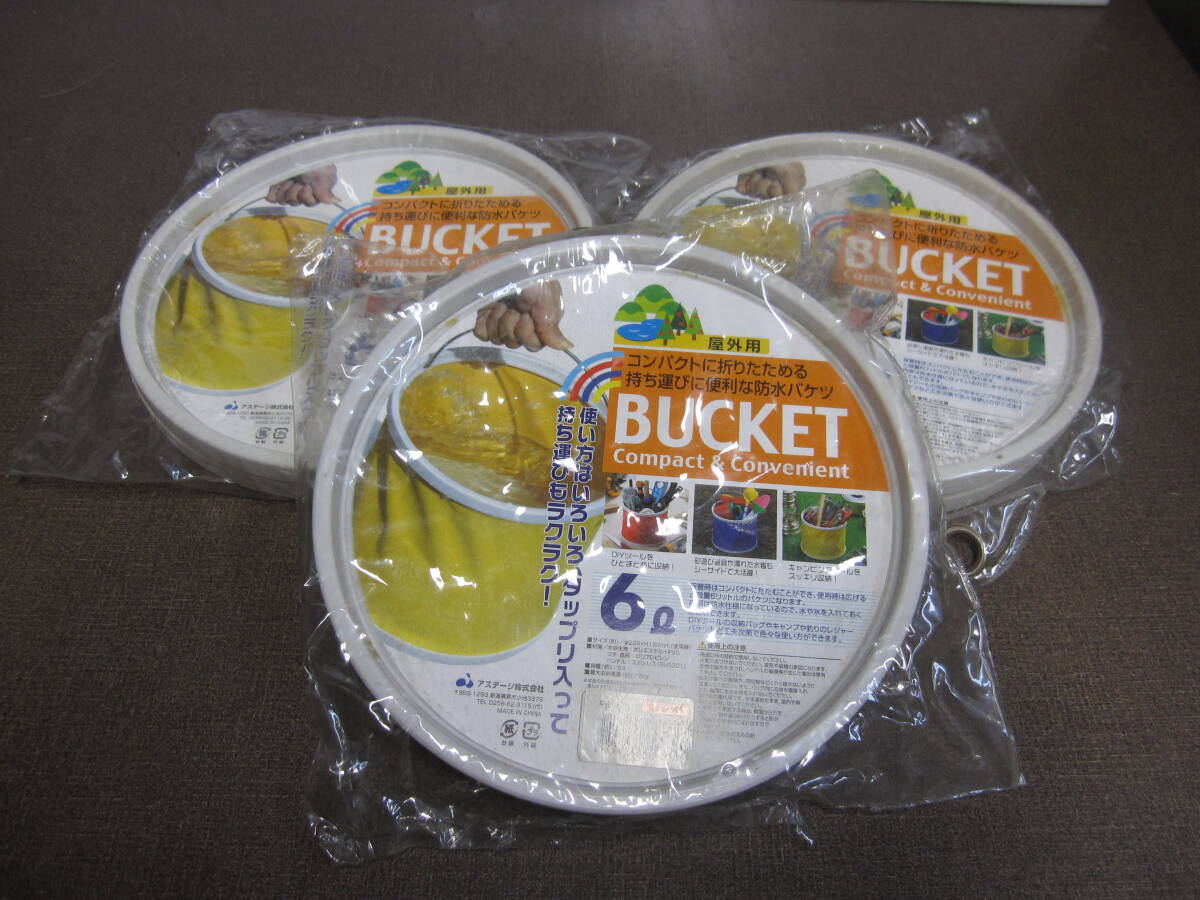コンパクトに折りたためる持ち運びに便利な防水バケツ 6L 新品 3ケで1個で\1800税込、送料無料