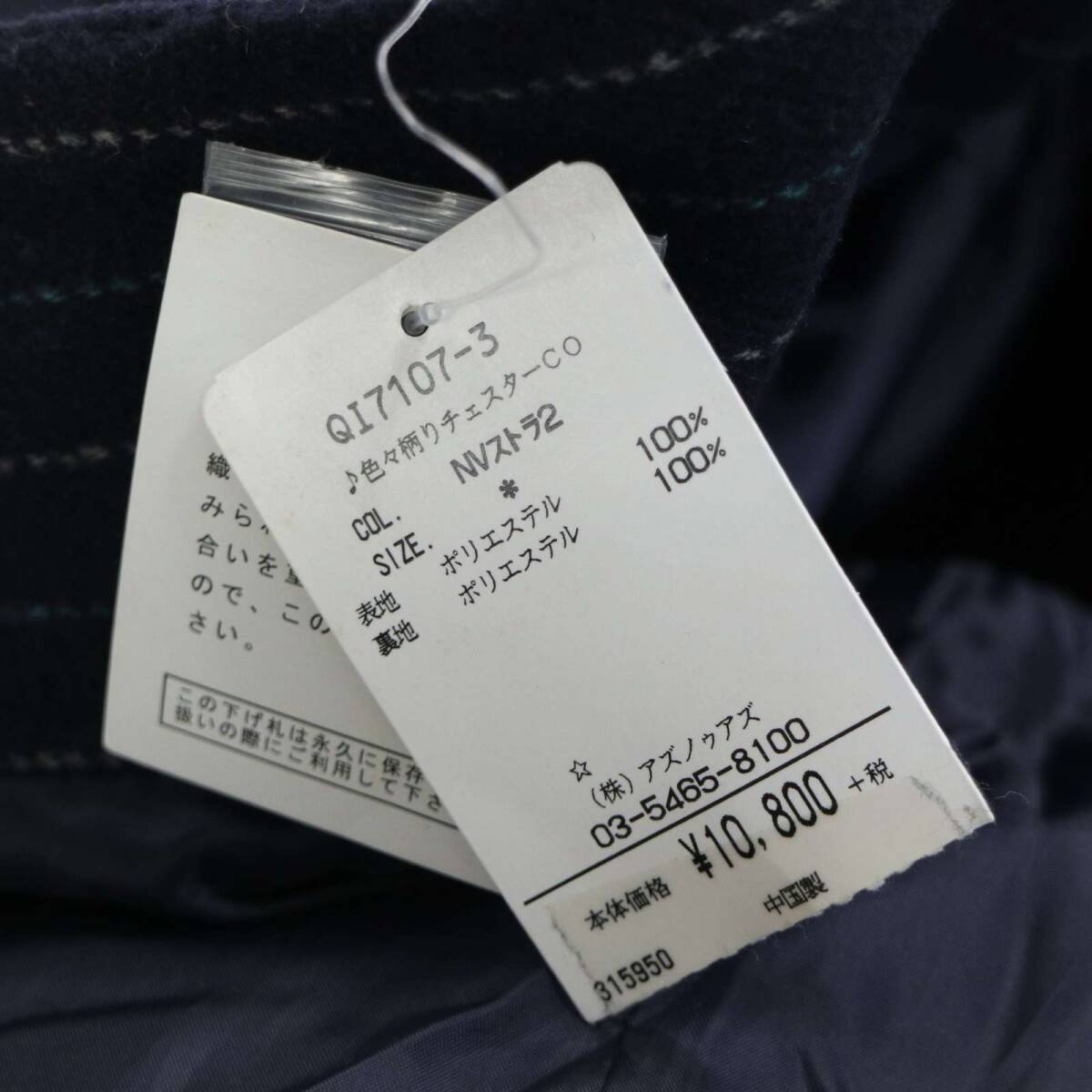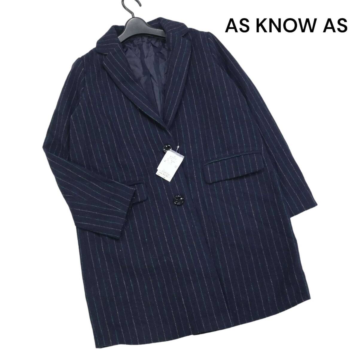 【新品 未使用】 AS KNOW AS アズノウアズ 秋冬 色々柄り ストライプ チェスター コート Sz.M レディース ネイビー