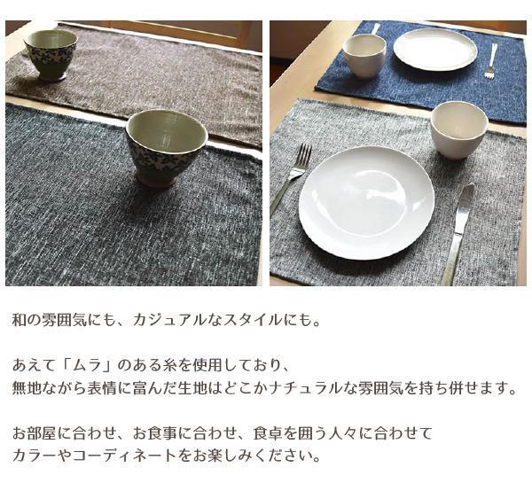 〇商品コメント | ・麻のようなさっくりとした素材に、あえてムラのある染糸を使用することで、無地ながら表情豊かなランチョンマットです。 |