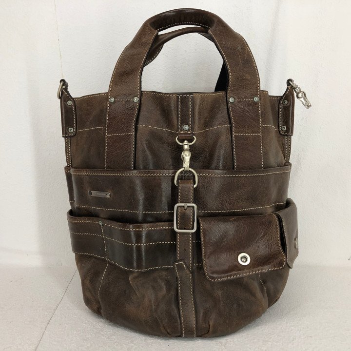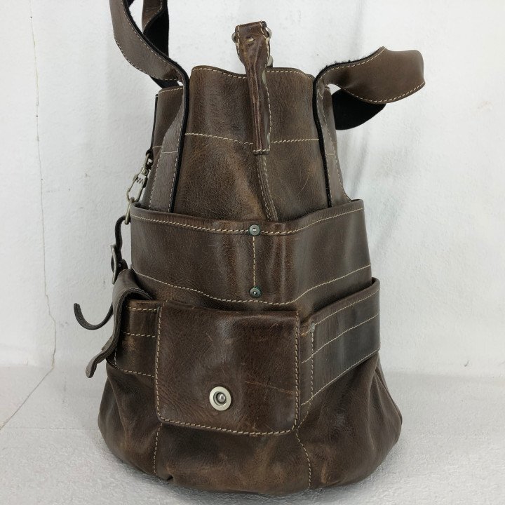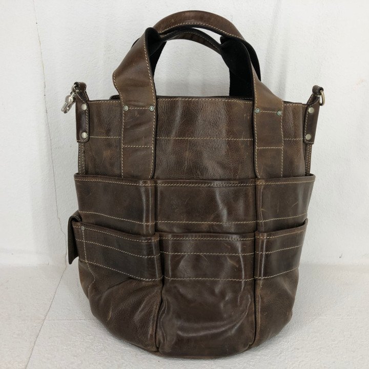 ▼SIZE ・縦:約33.5cm ・横:約27cm ・マチ:約26cm ・ハンドル長さ:約39cm ※あくまでも参考サイズですのでご了承下さい。 ▼color:ブラウン ※色の判断は出品者の主観で判断しております。 メーカーとカラーの表現が異なる場合があります。 ▼付属品:無し ▼商品説明 ・付属のショルダーストラップがありません。 ・レザーに汚れやキズ等があります。 ・金具部分に青錆やクスミ等があります。 ・タバコ臭がします。 ・使用に支障をきたす汚れ、ダメージは見受けられません。 ・こちらの商品は店舗での販売をしておりません。 商品状態は当店にて検品、確認を行い商品情報へ記載しておりますが、 記載外の微細な汚れ、シワ、スレ、ダメージなどがある場合がございます。 予めご了承頂けますようお願い致します。 |