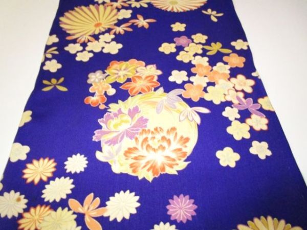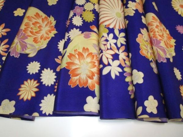 E-120★青紫*菊*牡丹*梅*水仙*正絹*古布はぎれ★文化人形/一閑張り/吊るし雛/市松人形アンティーク