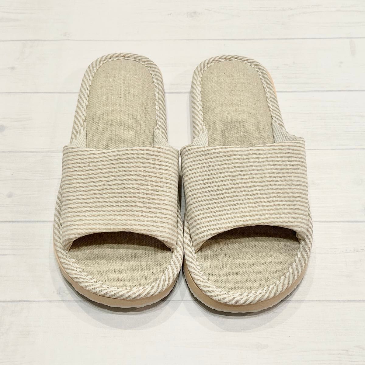 ルームシューズ ストライプ リネン 麻 スリッパ オールシーズン 通気性 抜群 さわやか シンプル