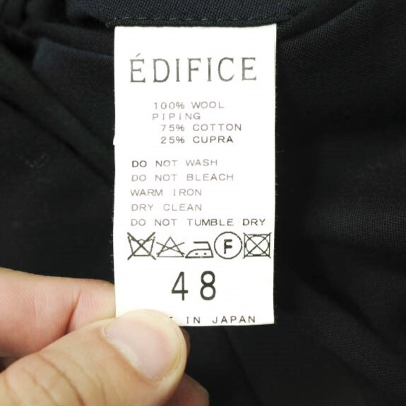 EDIFICE エディフィス 日本製 サイドラインノープリーツスラックス 09030300101210 48 ネイビー パンツ 側章 ボトムス g09801