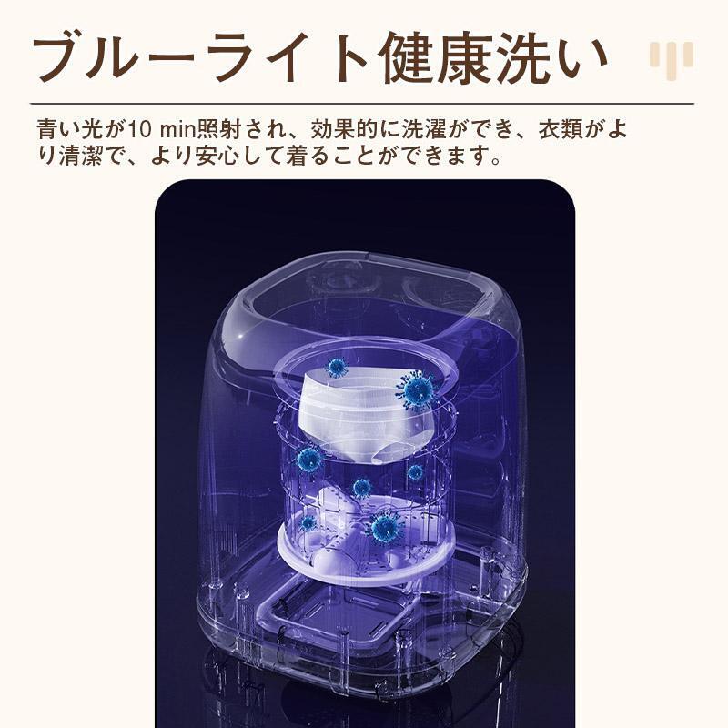 除菌機能: ミニ洗濯機はブルーライトで効果的に除菌し、抗菌率は最大99%。抗菌ブルーライト技術で、下着やベビー服の洗濯に最適です。