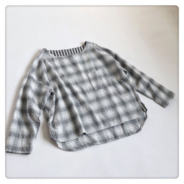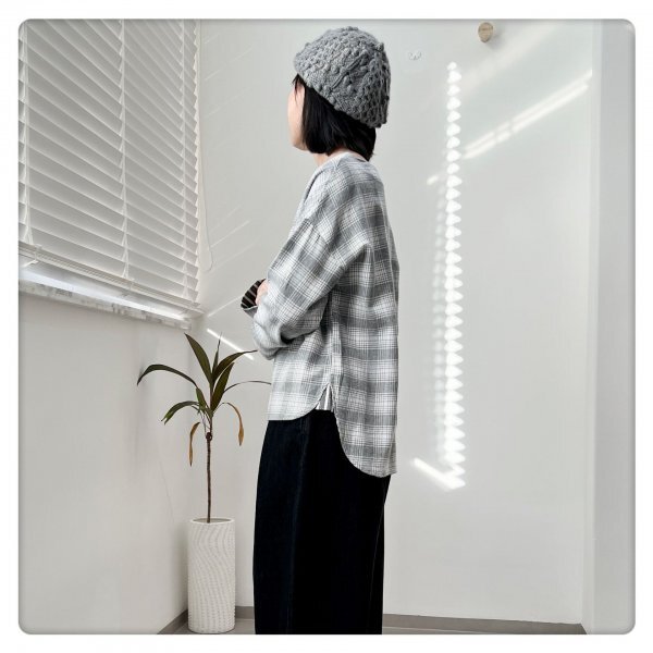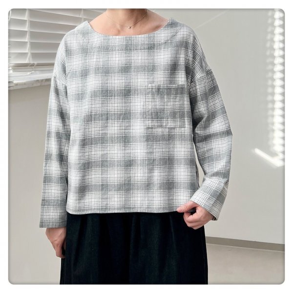 ps 0706 チュニック トップス フリーサイズ チェック柄 ダブルガーゼ ナチュラル 通気性肌触り抜群 ゆったり グレー系
