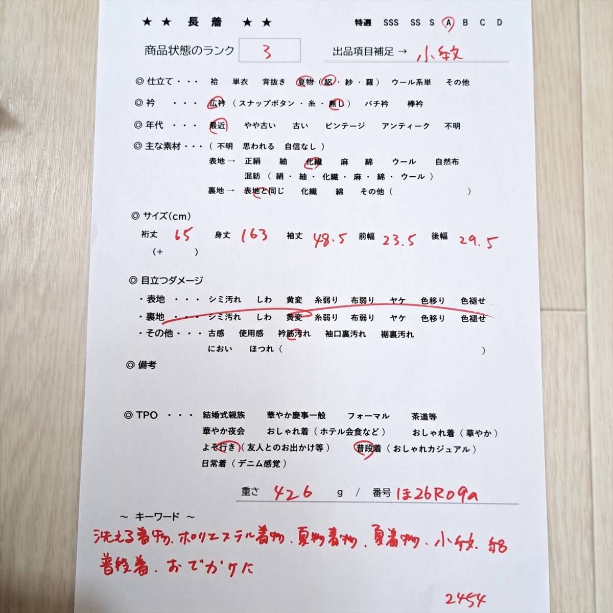 詳しくは写真2枚目の検品用紙の画像をご確認下さい。