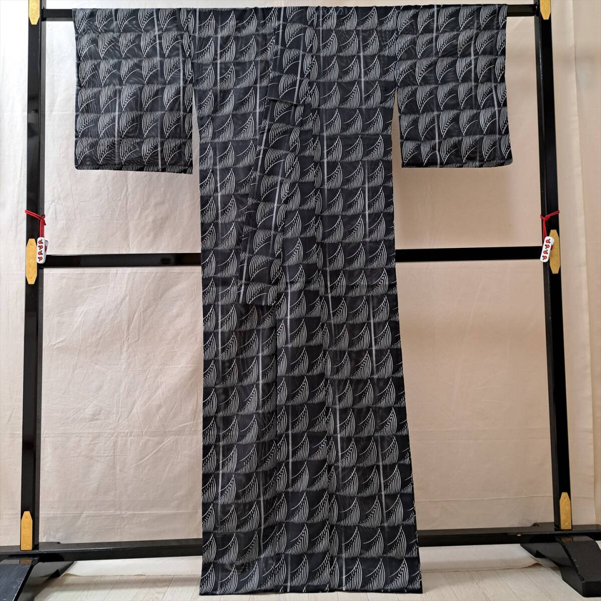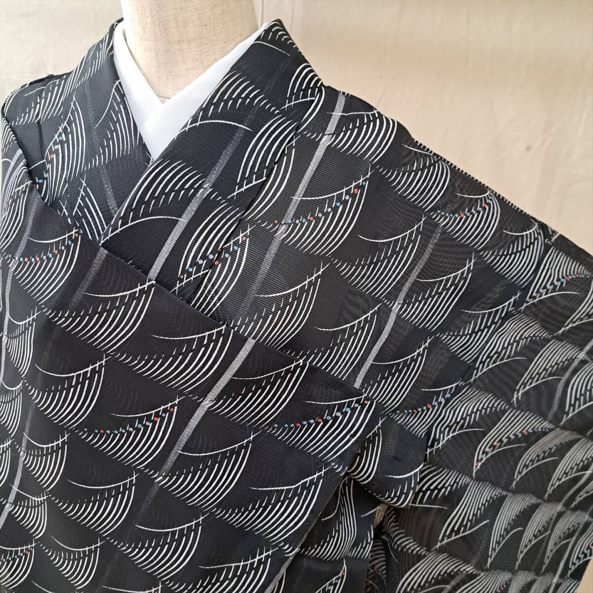 ■着物の越田■裄65身丈163 化繊 小紋 夏物 絽 洗える着物 ポリエステル 夏着物 夏物着物 普段着 おでかけに さりげなくカラフル■ほ26R09a