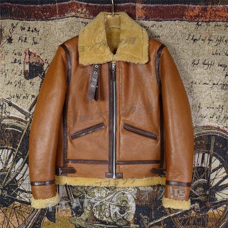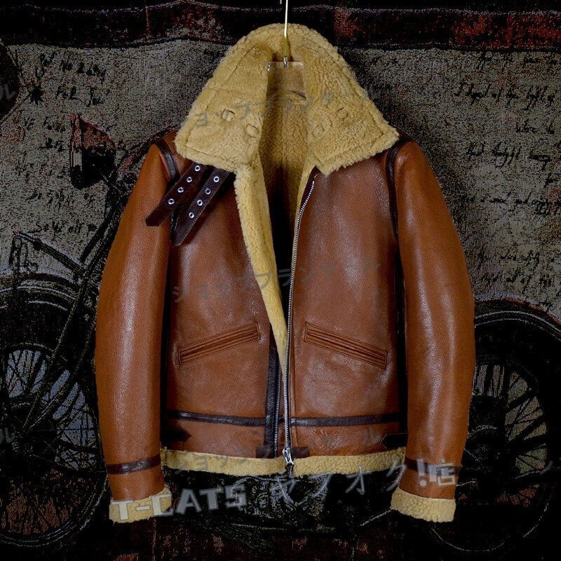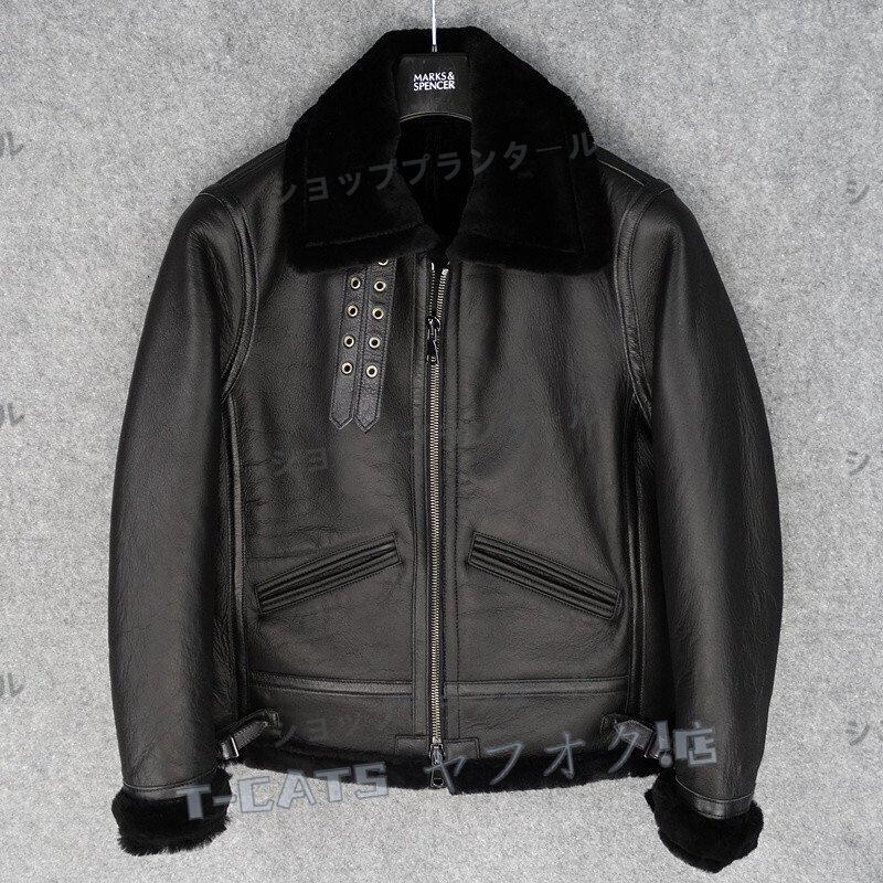 ☆新品秋冬暖かい 厚手 本革ジャケット メンズ ムートン ウール 革ジャン 本革コート S~4XL 黒