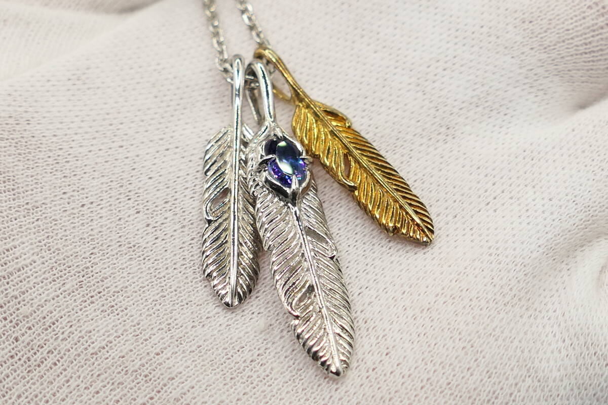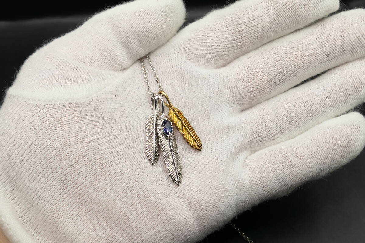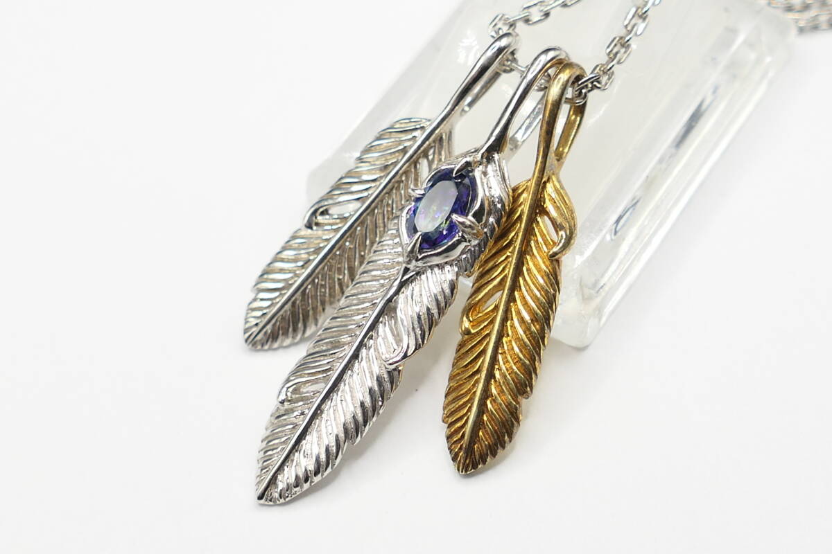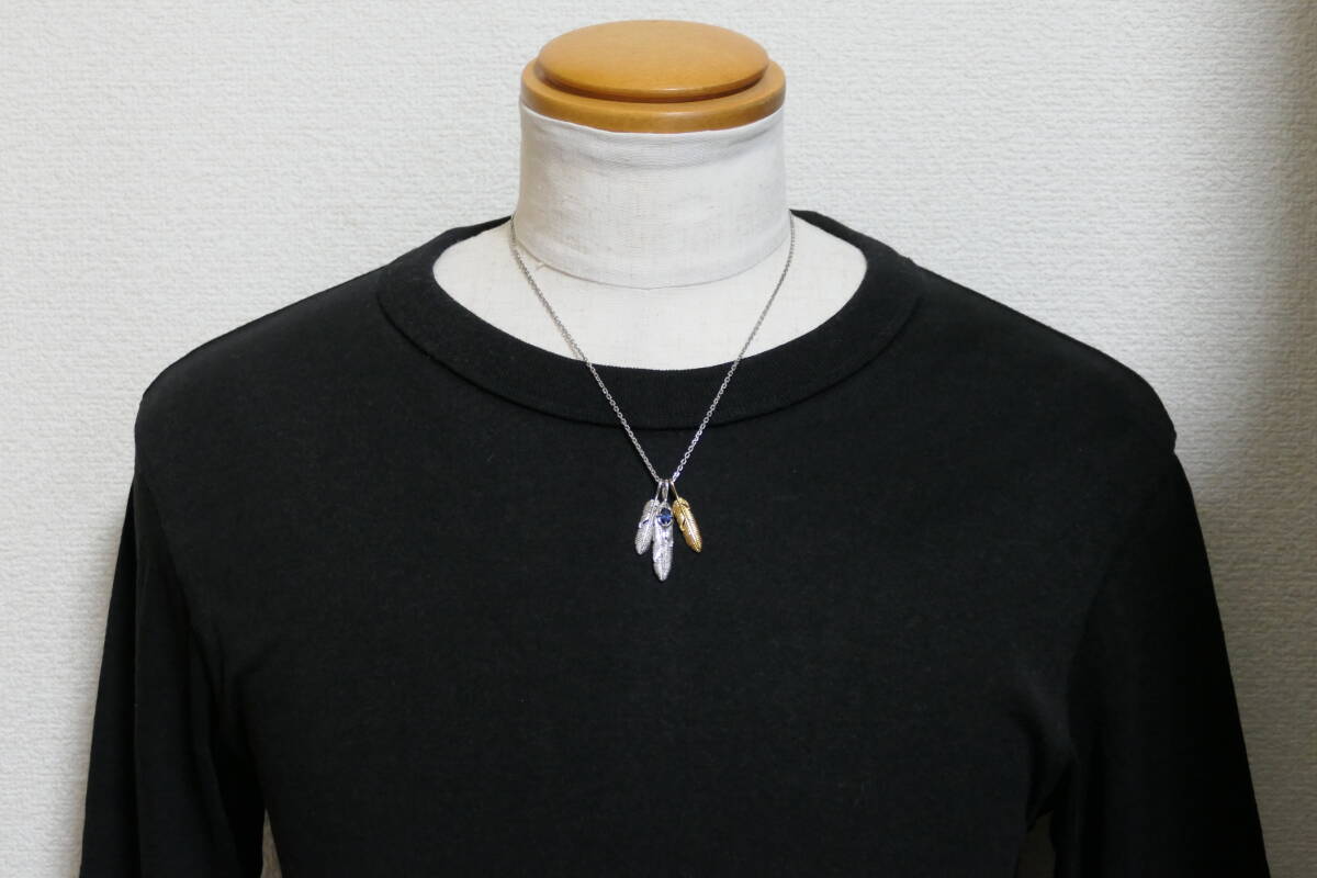 Artemis Classic(アルテミスクラシック)の3連重ね着けタイプのフェザーペンダントネックレス。
