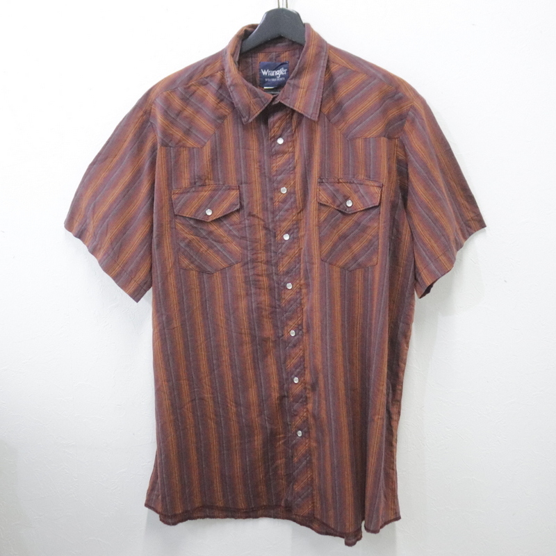 G760 90sビンテージ Wrangler ラングラー 半袖シャツ■1990年代製 約XLサイズくらい ブラウン ウエスタン コットン ポリエステル