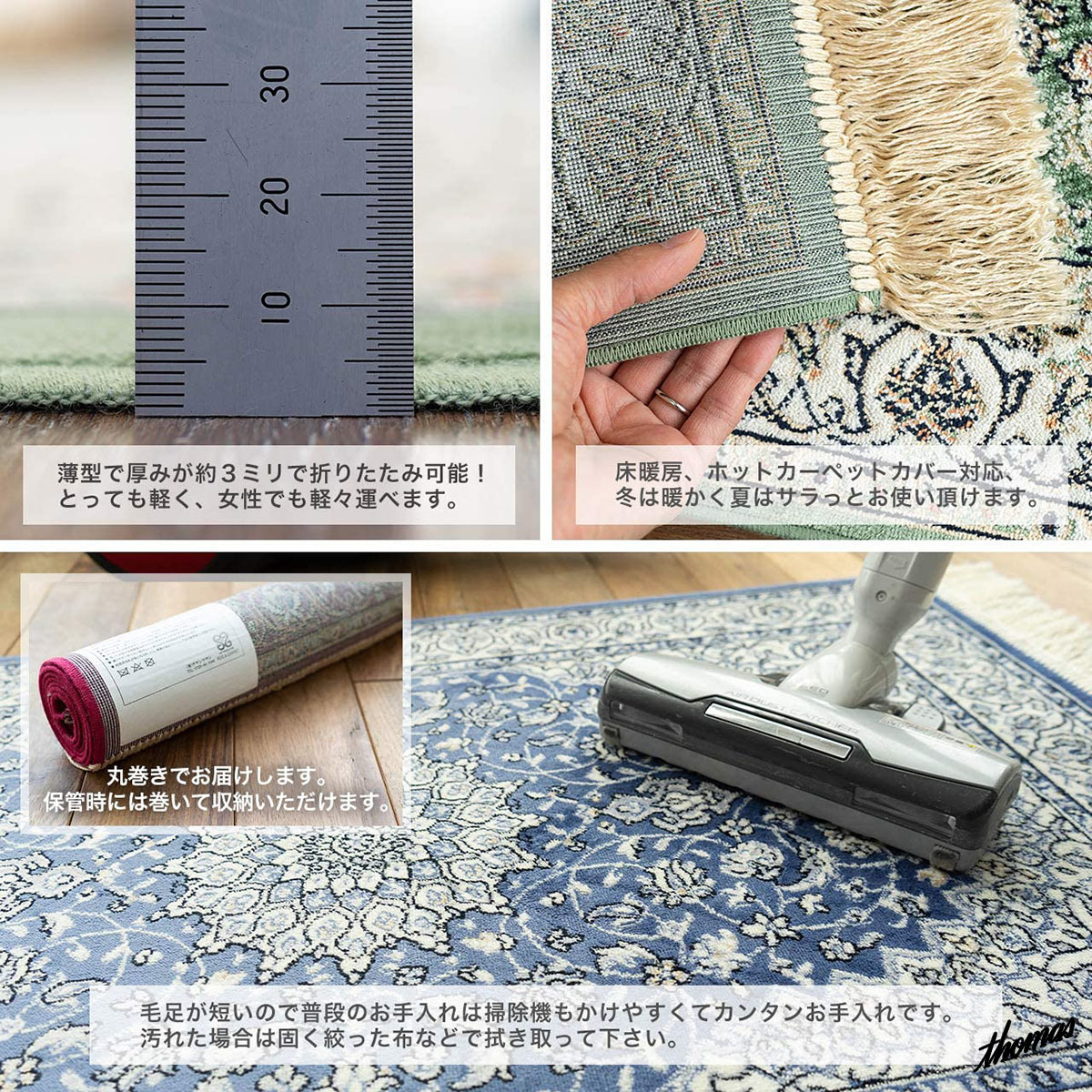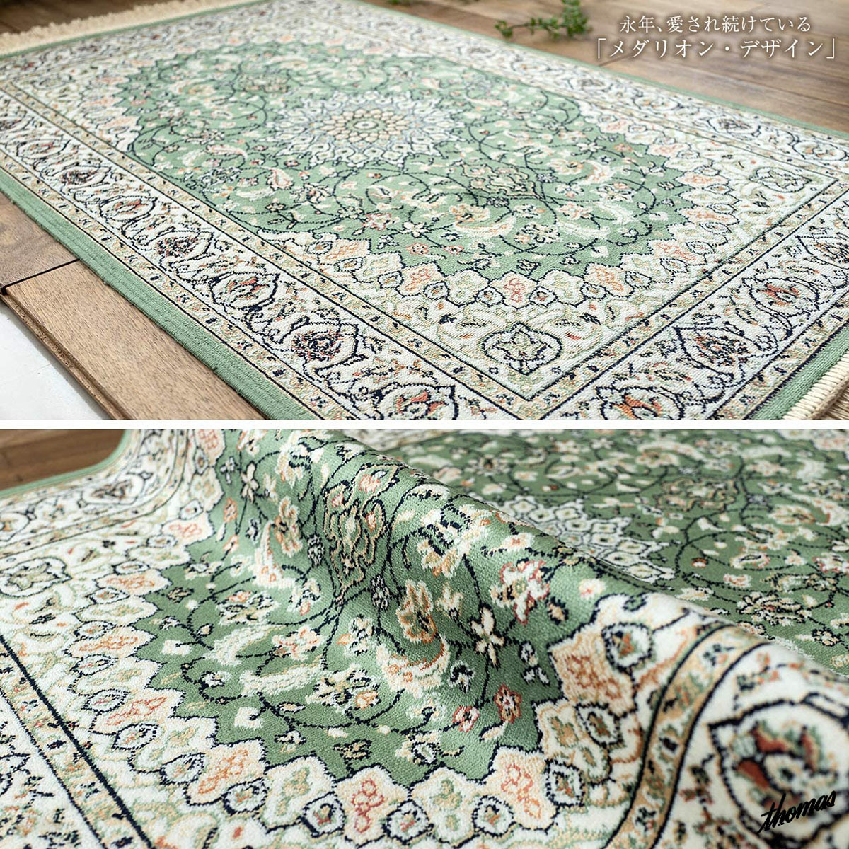 商品名:◆ペルシャ絨毯のようなデザイン◆ 玄関マット 67×105cm モケット織 オールシーズン 掃除がしやすい 模様替え 薄型 グリーン