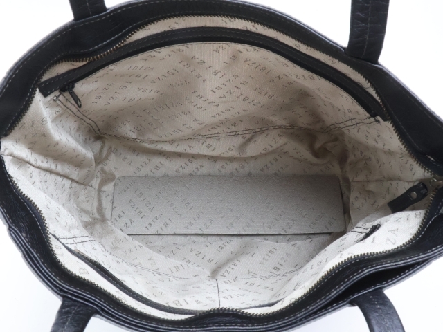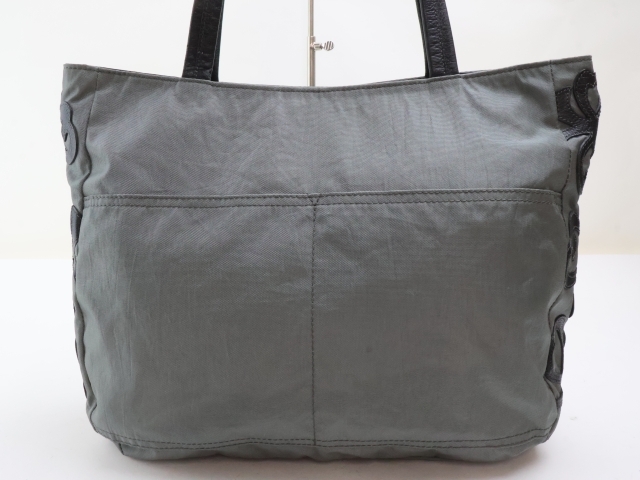 2506-78 イビサ イビザ トートバッグ IBIZA ナイロン×レザー製 グレー×ブラック 上ZIP | |