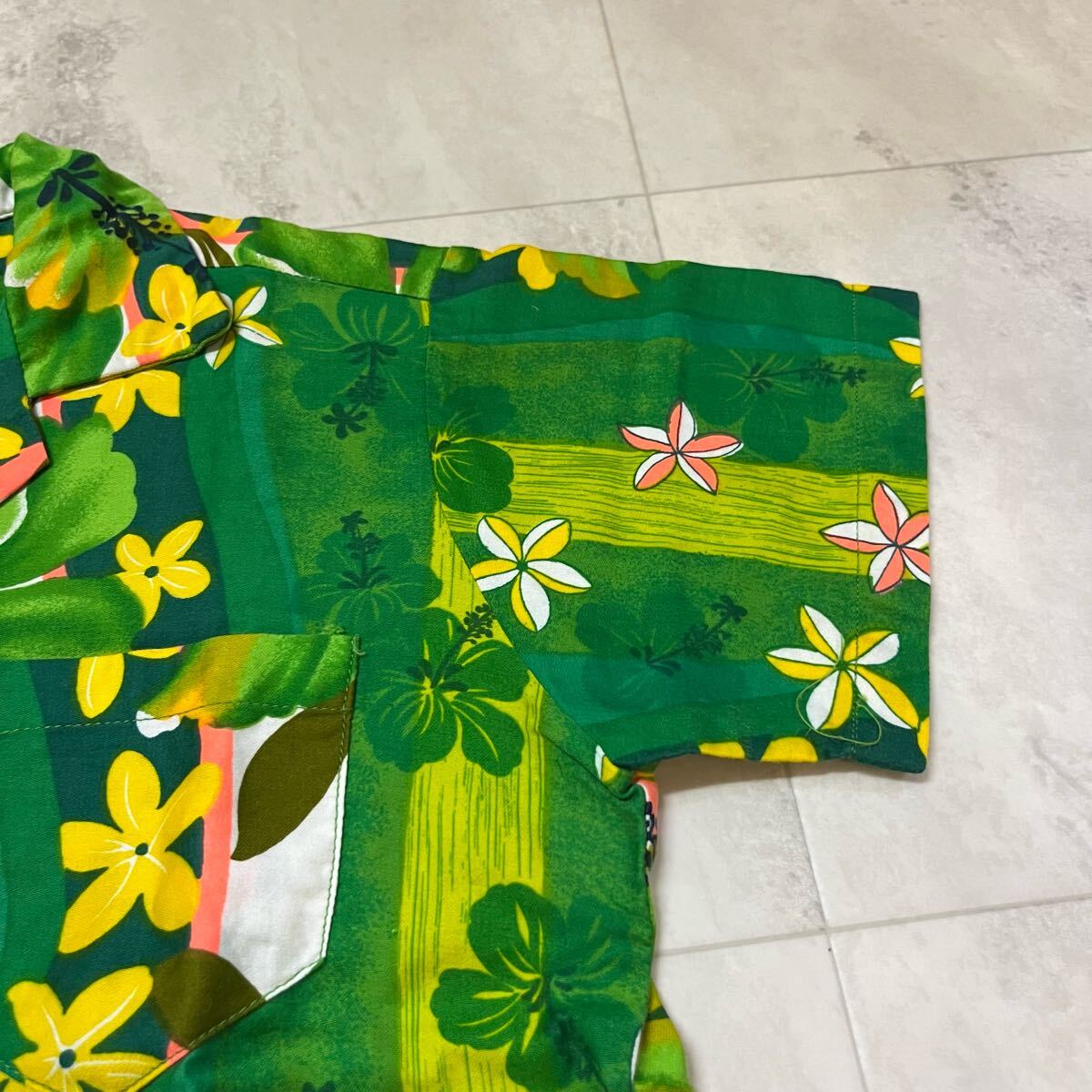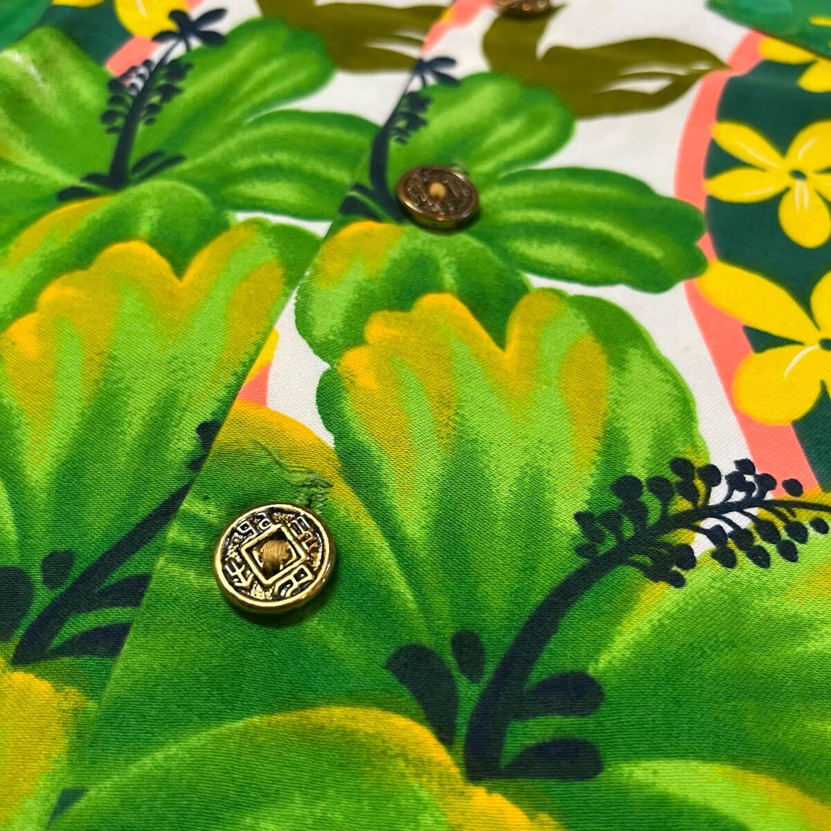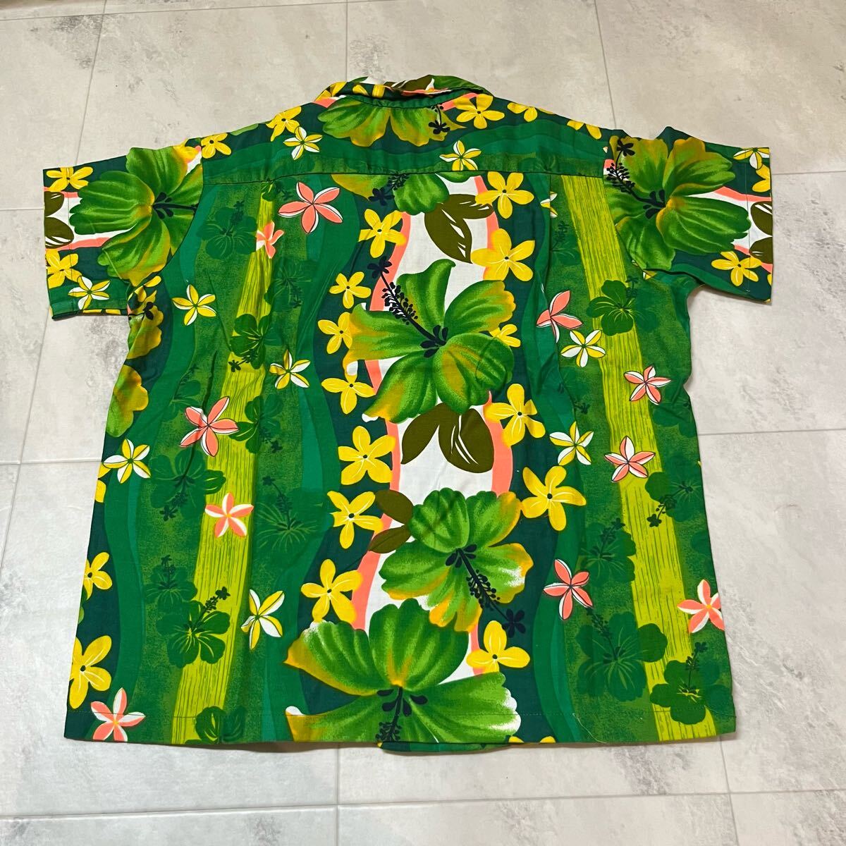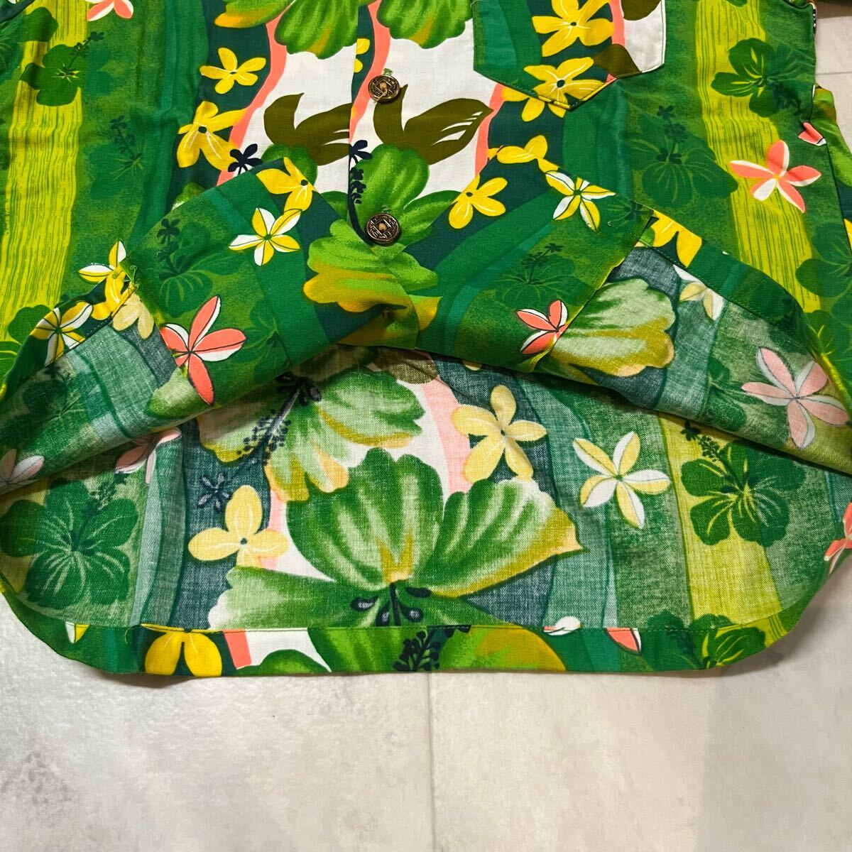 60s USA製 ROYAL HAWAIIAN ロイヤル ハワイアン アロハシャツ メタルボタン 古銭ボタン ヴィンテージ コットン ハイビスカス 玉mc3868