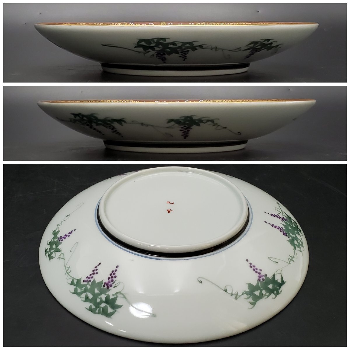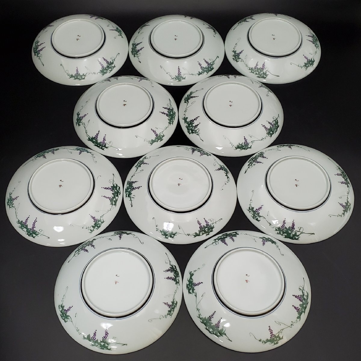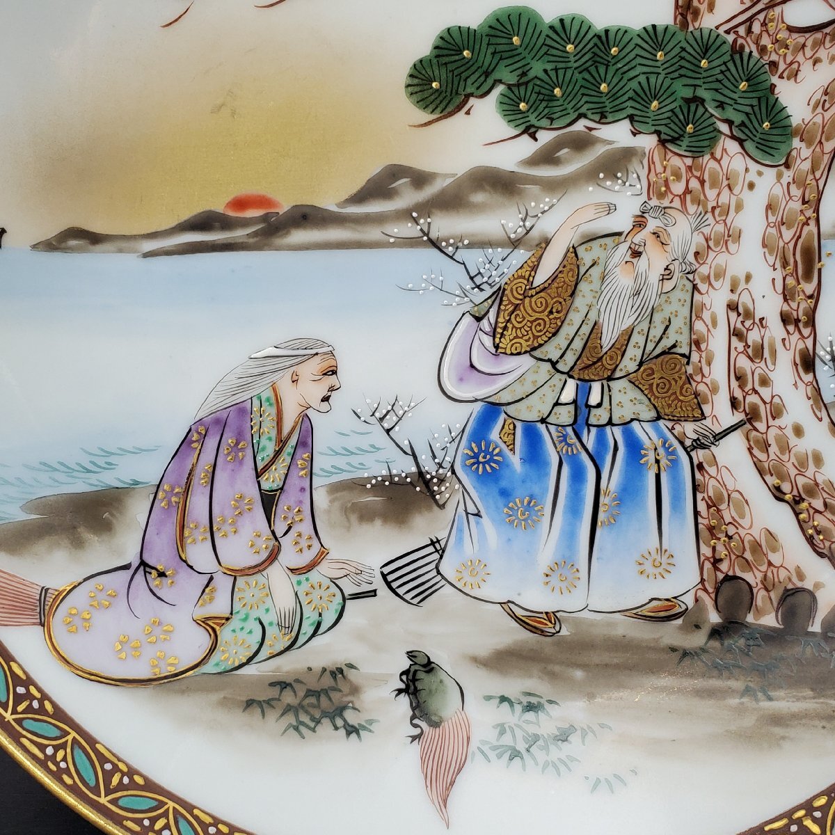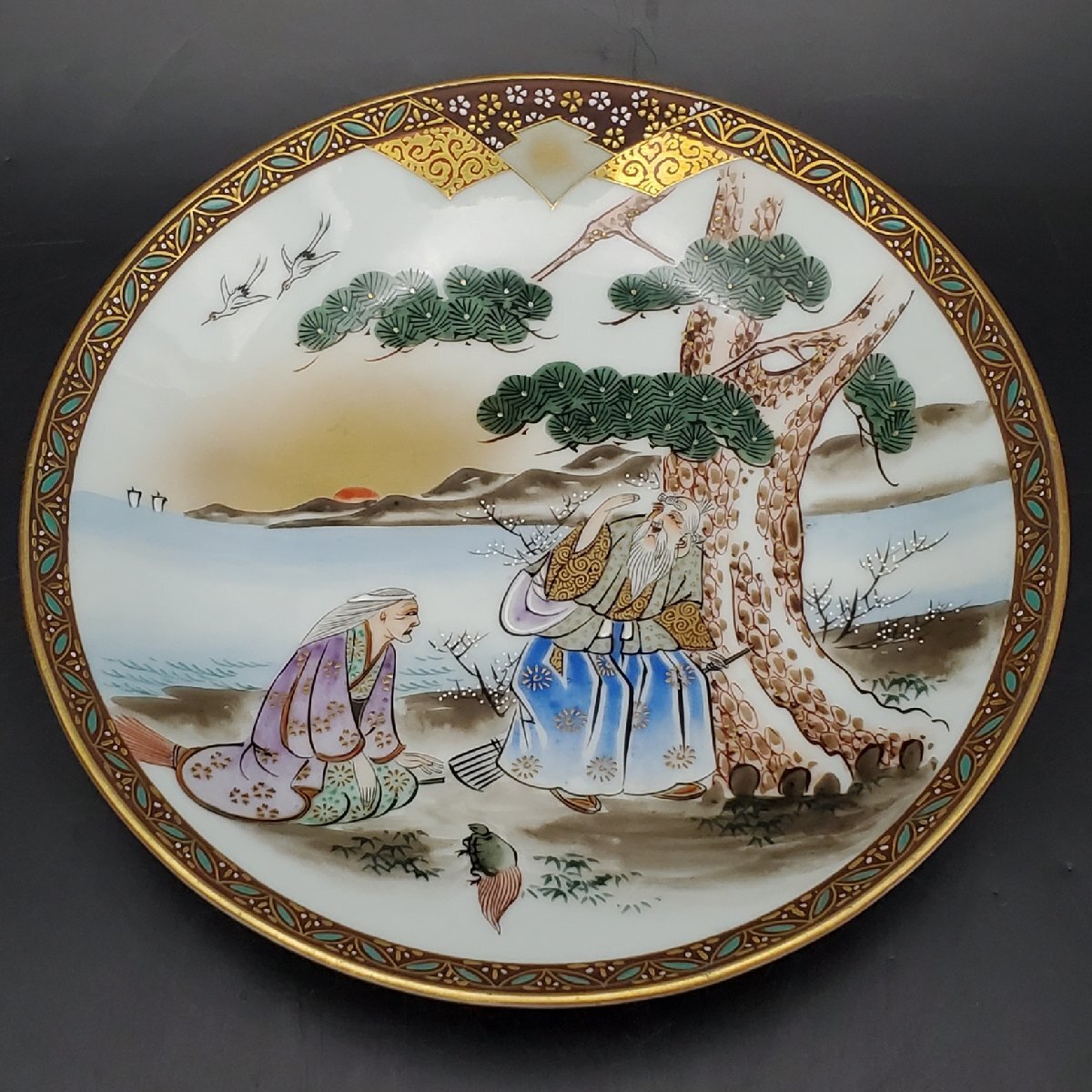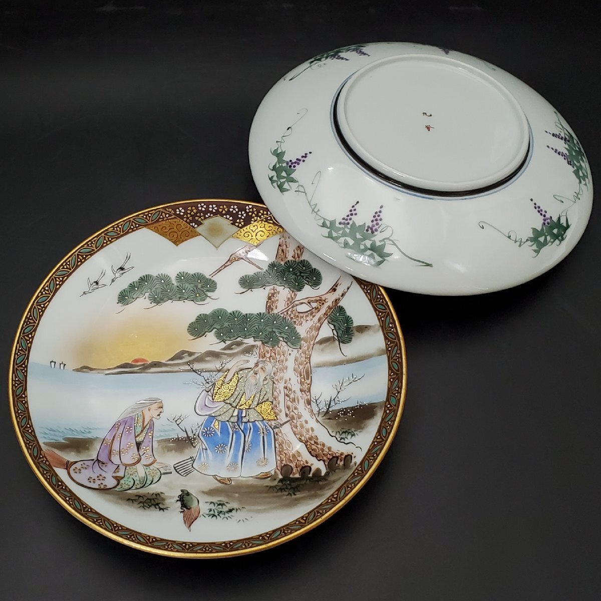 【宝蔵】九谷焼 金彩色絵鶴亀高砂図 銘々皿 10客 約20.5cm 時代物 ①