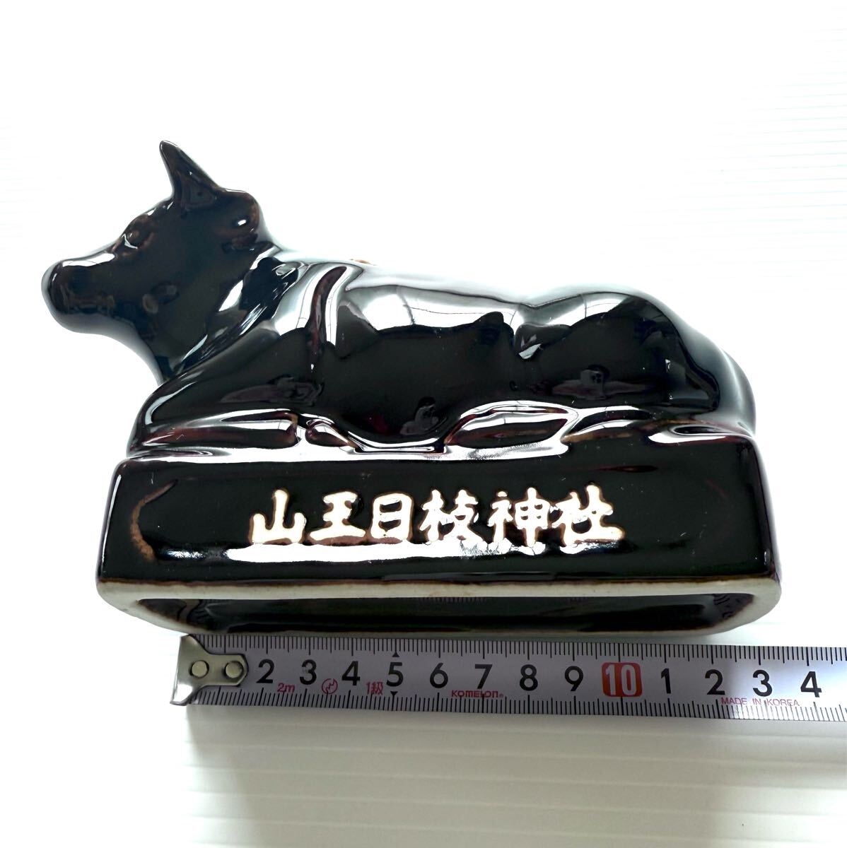 日枝神社 山王 牛 ボトル 焦茶 中身無 御神酒入れ 撫で牛 約15.5×6×10位 神具 霊験 招福 魔除 厄災除 開運 大山咋神 国常立神 伊弉冉神