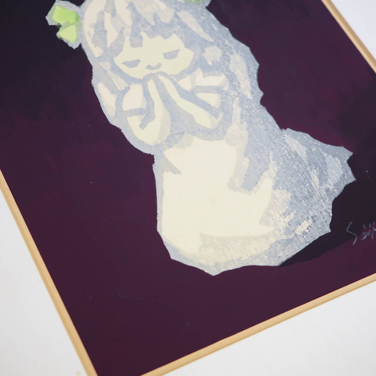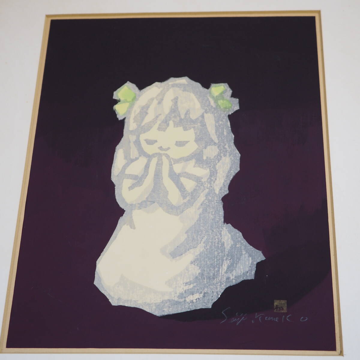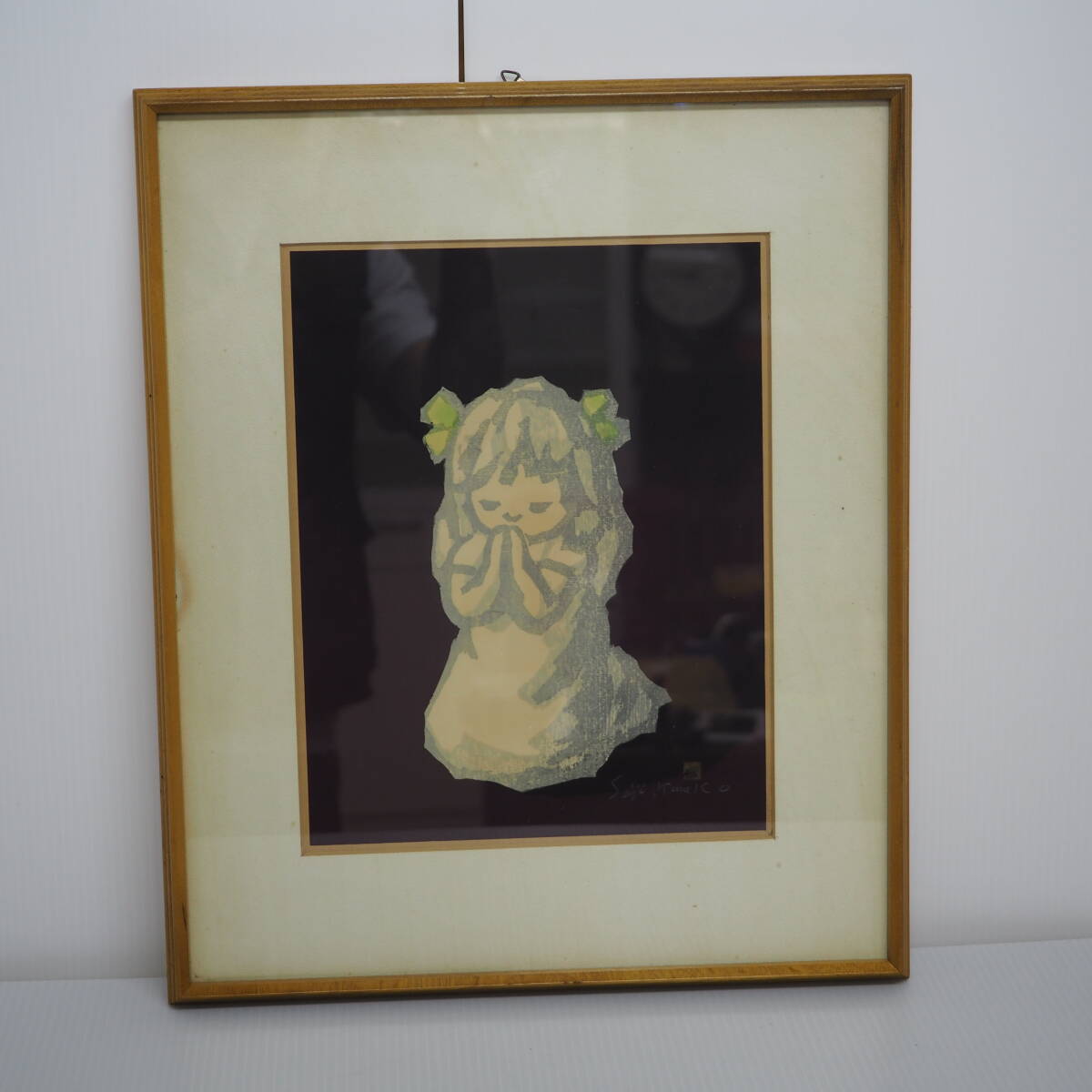 真作 金子誠治 お祈り 木版画 額装済 額縁サイズ:約36.5×44cm程度 画サイズ:約23×29cm程度