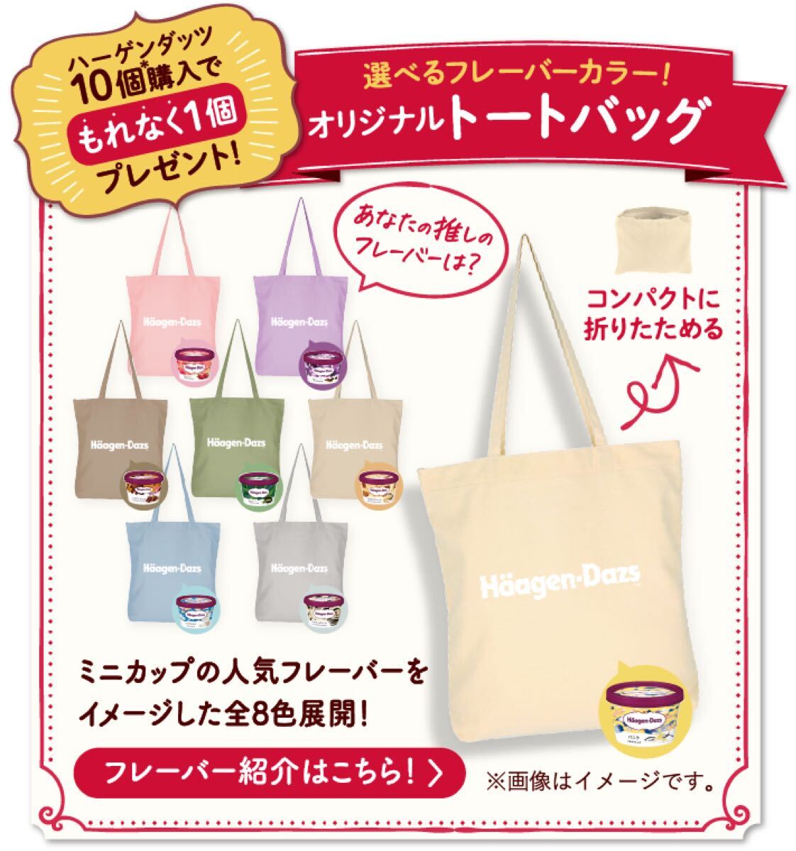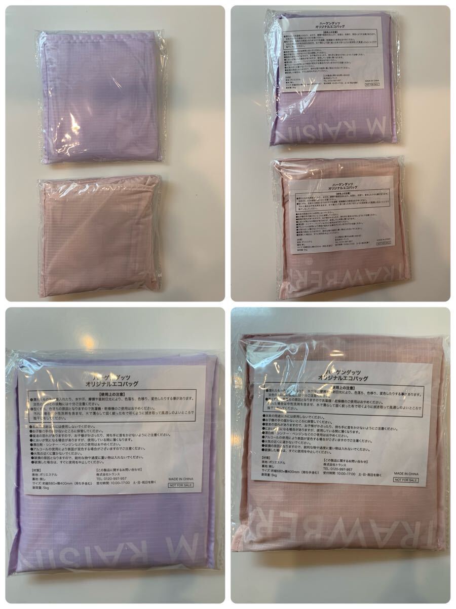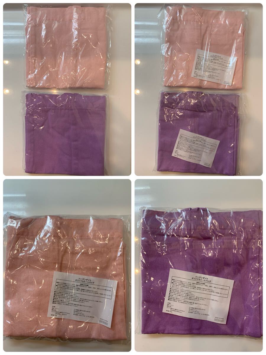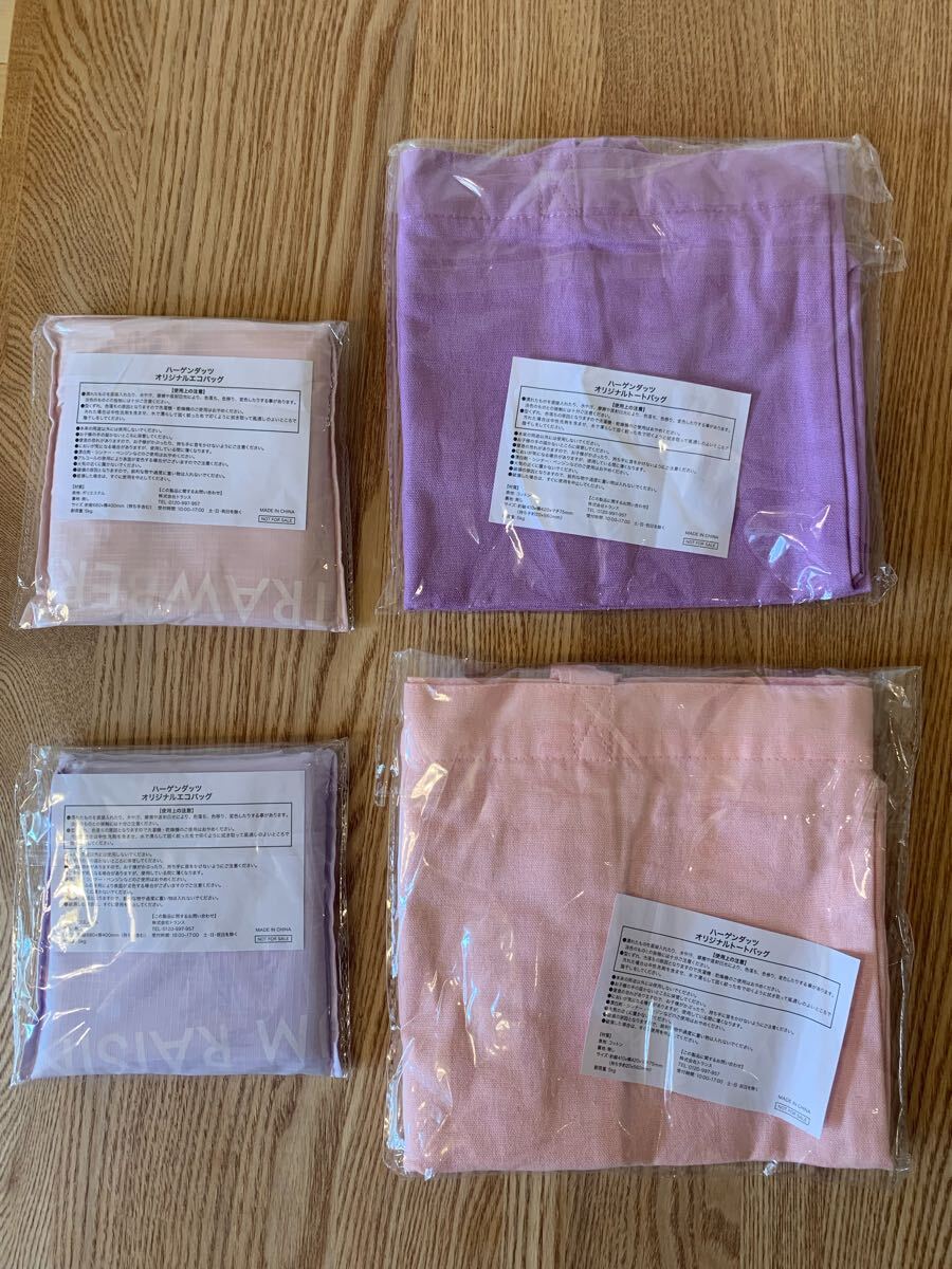 ハーゲンダッツ:オリジナルトートバッグ2種(ピンク・紫)・オリジナルエコバッグ2種(ピンク・紫):セット【新品・未使用・未開封】