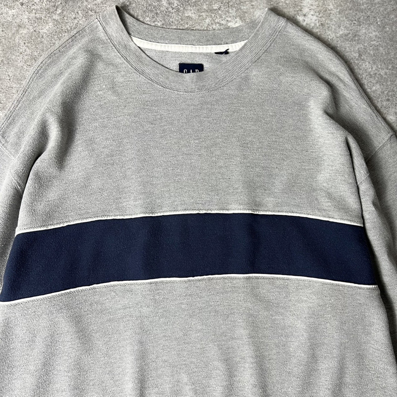 90s GAP 2トーン 切替 コットン 鹿の子 長袖 Tシャツ / 90年代 オールド ギャップ カットソー ロンT ボーダー グレー ネイビー