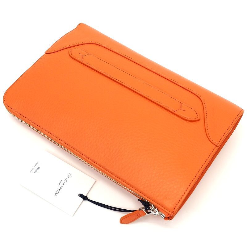 F0693S 未使用品 PELLE MORBIDA/レザークラッチバッグ オレンジ PMO-PB058 日本製 カード収納有 ペッレモルビダ メンズ