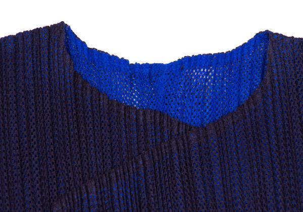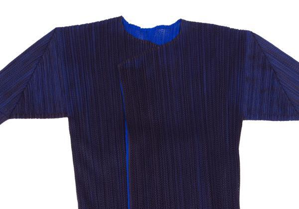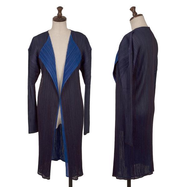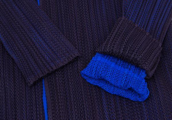 プリーツプリーズPLEATS PLEASE メッシュバイカラーレイヤードボタンレスコート 紺青4 |