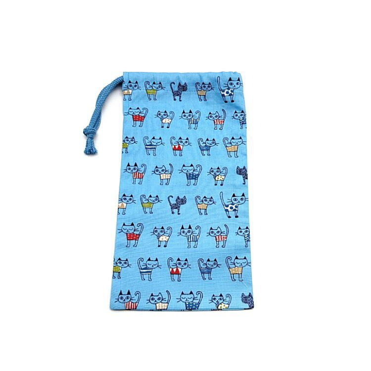 カトラリー袋・巾着袋 長方形【ネコだらけ柄 ブルー】カトラリーケース 箸袋 はし袋 コップ袋 ポーチ ねこ 猫 にゃんこ アニマル cat