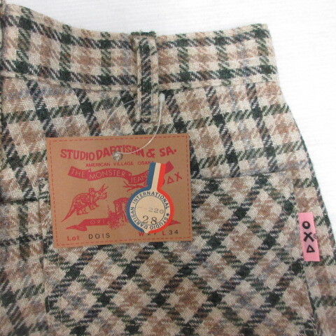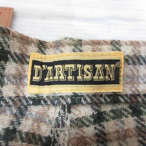 未使用品 ステュディオダルチザン STUDIO D'ARTISAN チェック柄 ペインター パンツ ウール 28 ベージュ ボタンフライ タグ付き メンズ