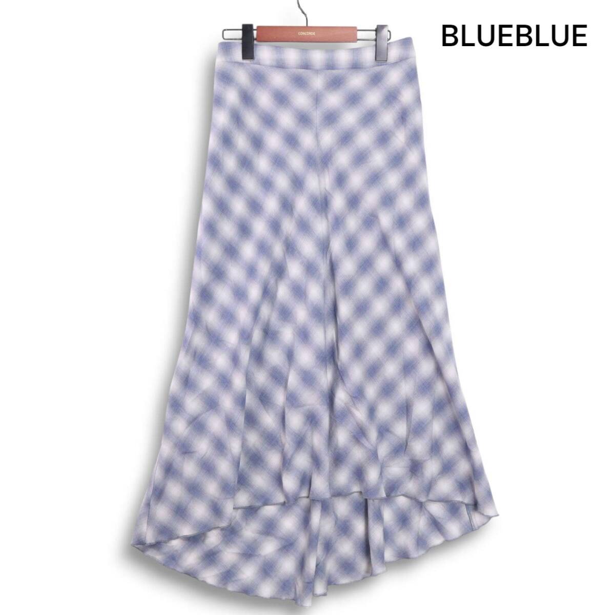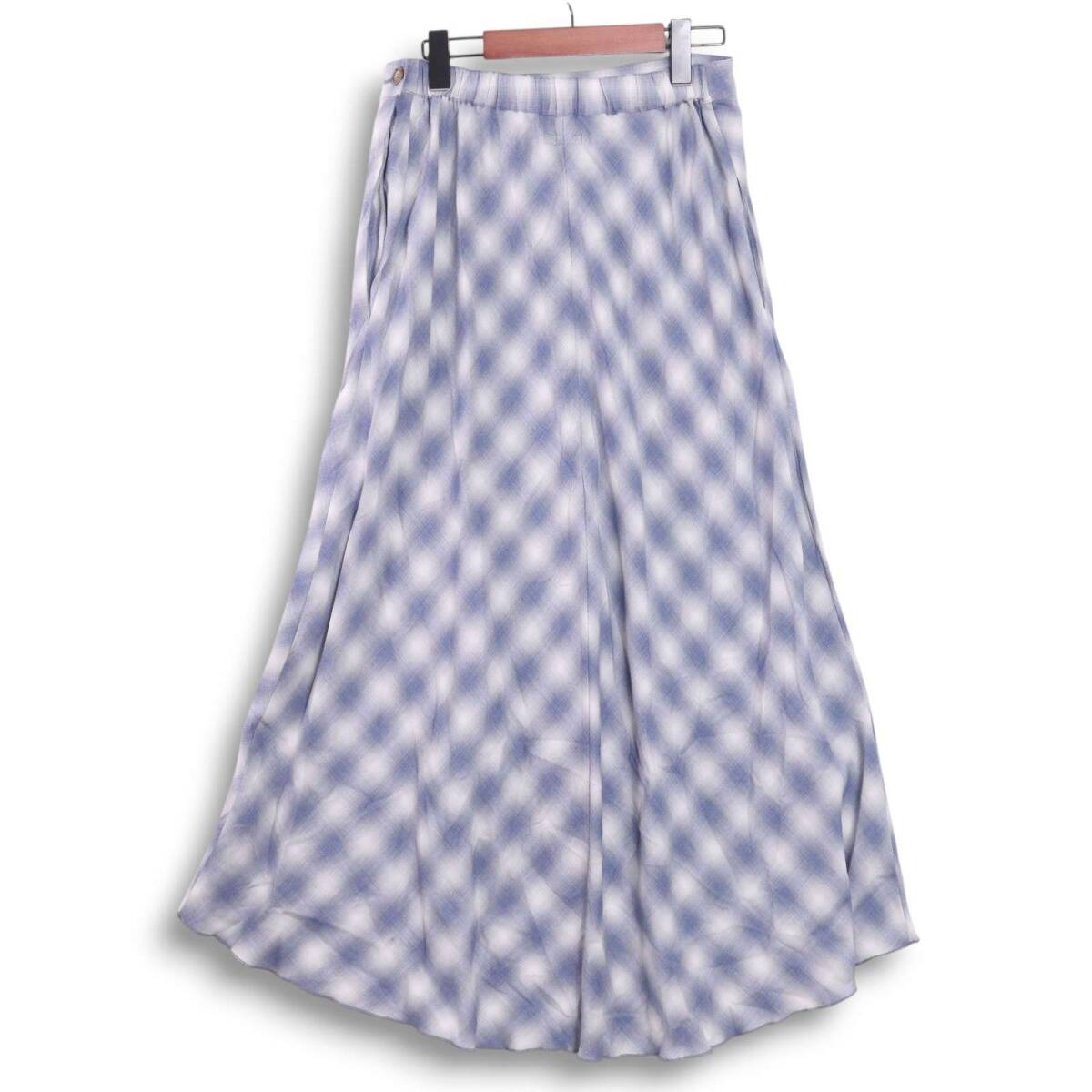 BLUEBLUE ブルーブルー ハリウッドランチマーケット 春夏★ ぼかしチェック ロング フレア スカート Sz.F レディース 日本製
