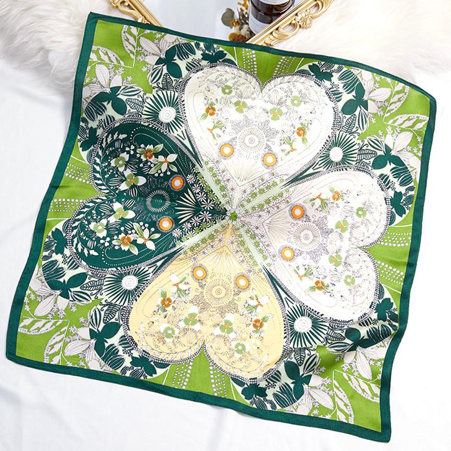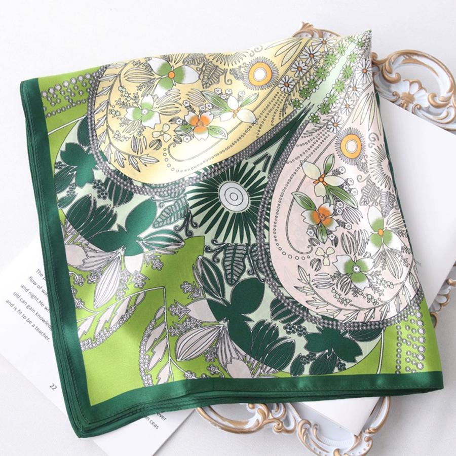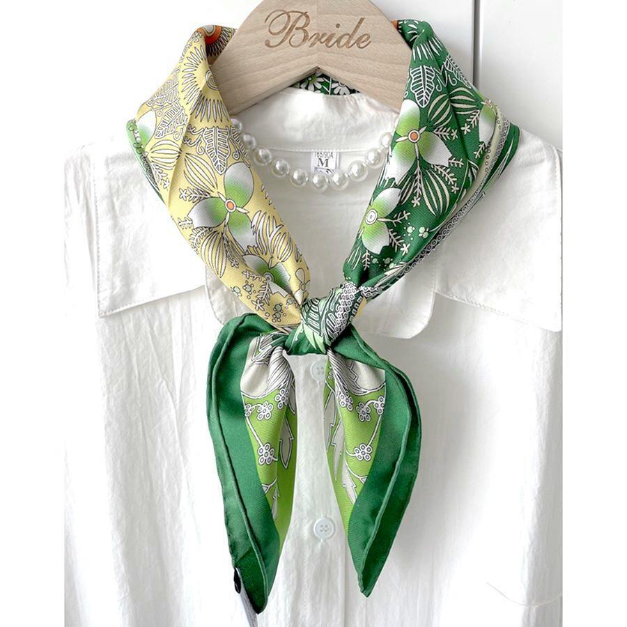 新品 スカーフ 花柄 大判 スクエア シルク風 艶 ヘアアレンジ 緑 AA30