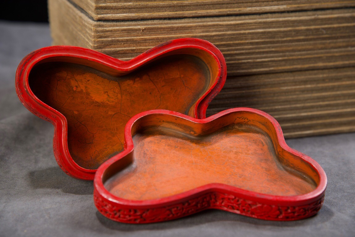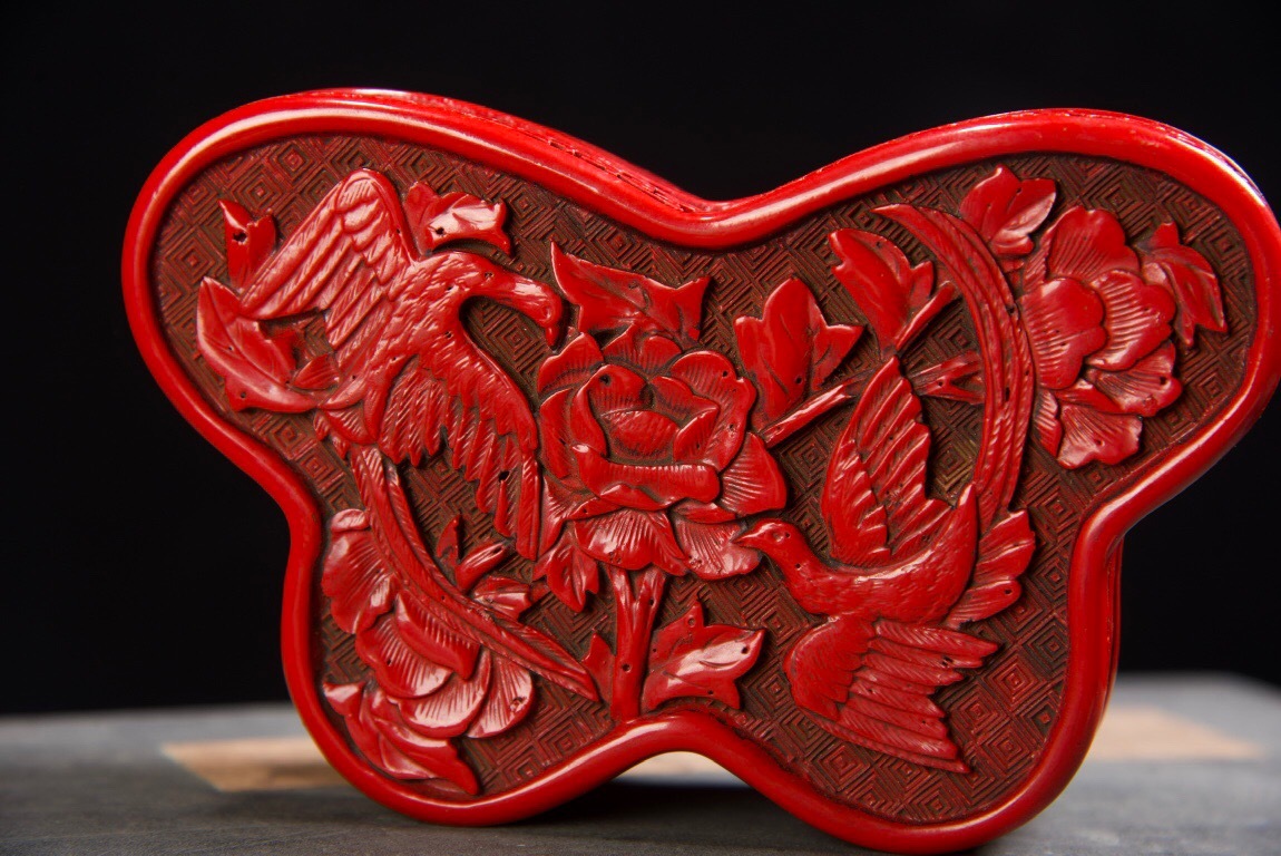 | 【蔵友館蔵品・漆器漆彫・剔紅・花鳥紋・蝴蝶盒・置物・賞物】・古董品・中国古玩・時代物・希少珍品・中国時代美術 |