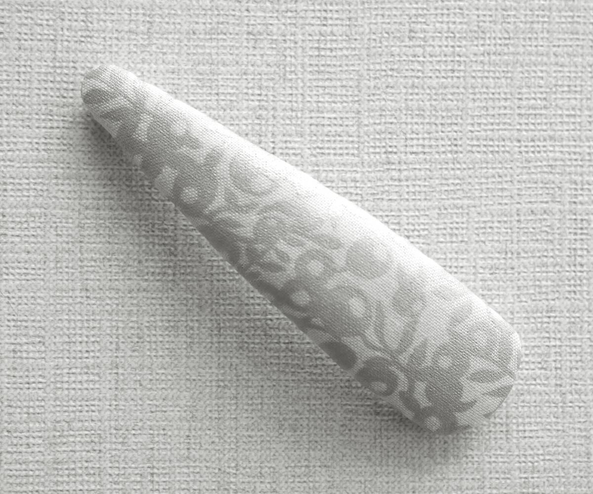リバティプリントのラセンビーコットン(ウイルトシャー・シルバー系)でパッチンピンを作りました。