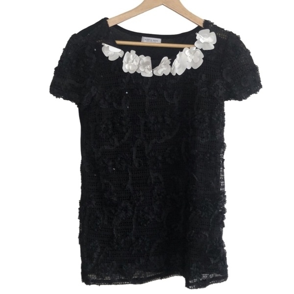 オースチンリード Austin Reed 半袖カットソー サイズ38 L - 黒×白 レディース レース/フラワー(花) 美品 トップス