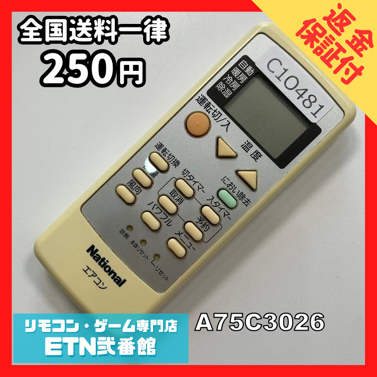 C1O481 【送料250円】エアコン リモコン / National ナショナル A75C3026 動作確認済み★即発送★ * 冷房 暖房