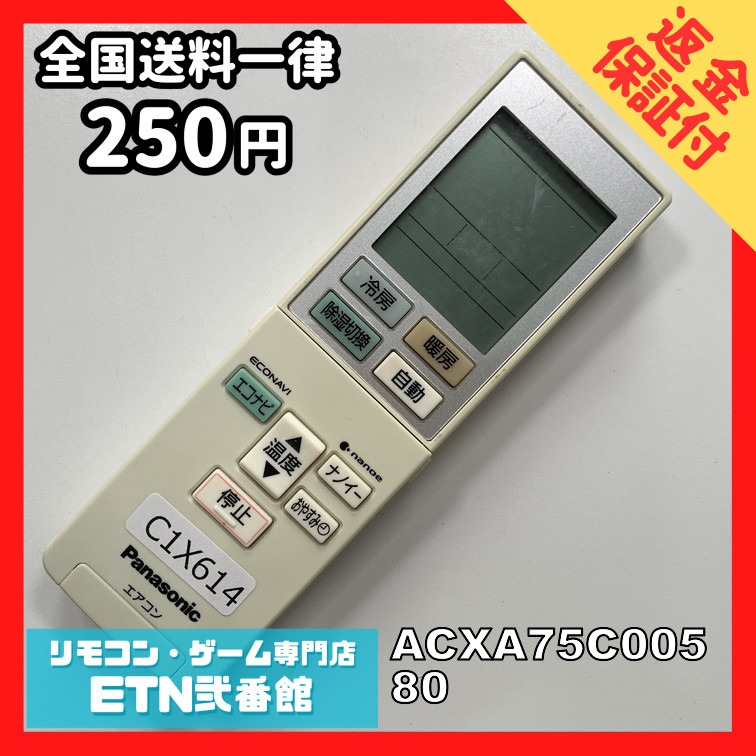 C1X614 【送料250円】エアコン リモコン / Panasonic パナソニック ACXA75C00580 動作確認済み★即発送★ 冷房 暖房