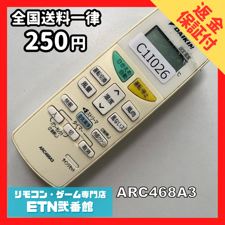 C1I026 【送料250円】エアコン リモコン / Daikin ダイキン ARC468A3 動作確認済み★即発送★ 冷房 暖房