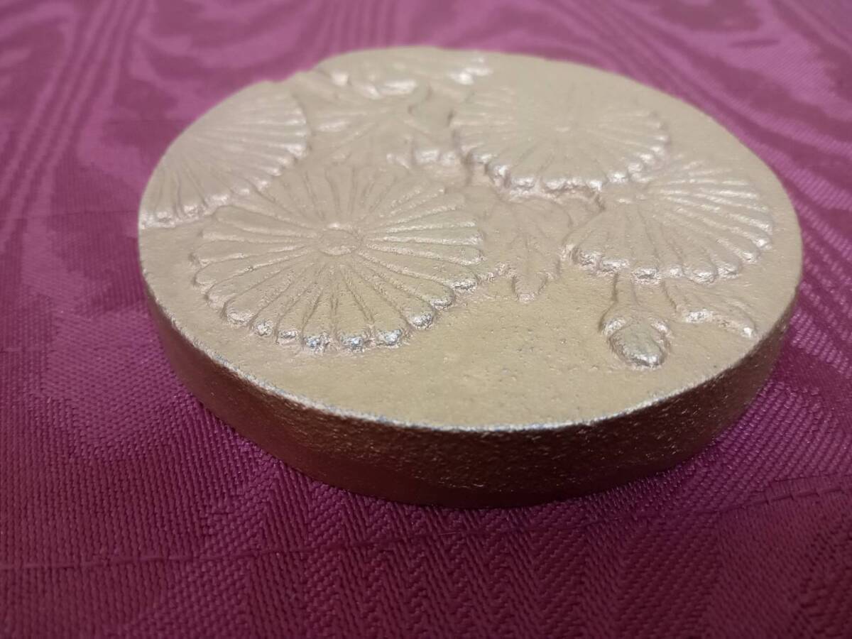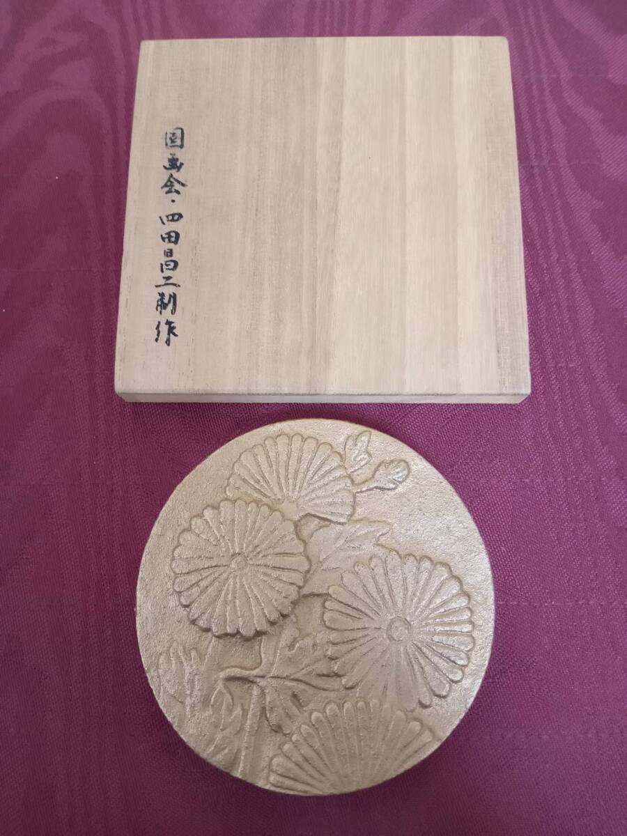 【四田昌二作 国画会 菊花文鎮】事務用品 インテリア 工芸【B8-3-2】0607