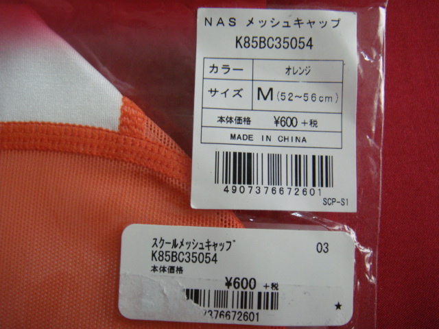 NAS KIDS^,,.メッシュキャップ*サイズ:M/52~56cm・オレンジ_.,,^「新品」