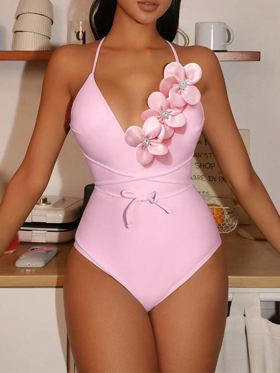 レディース 水着 ワンピース 1着 女性用上品な花柄ワンピース水着、ビーチサイドのホリデーアウトフィット