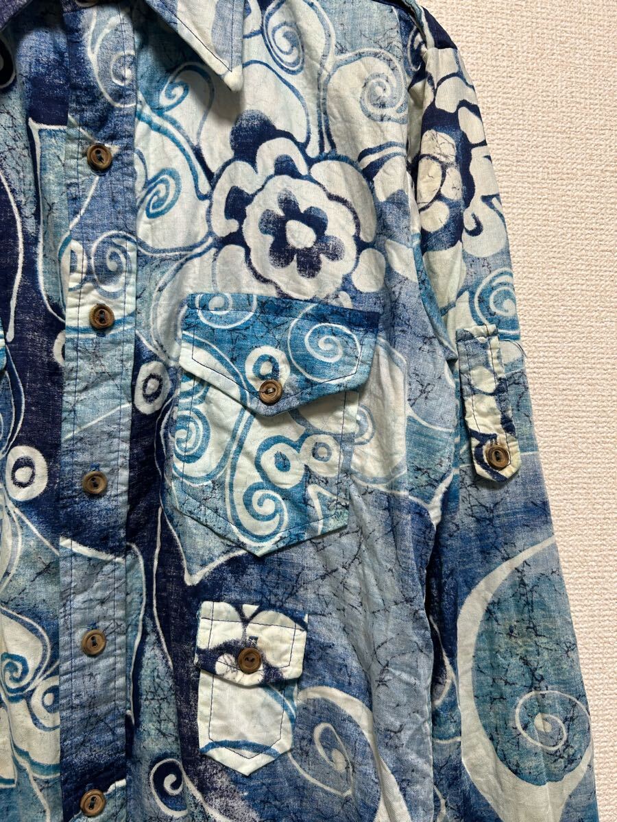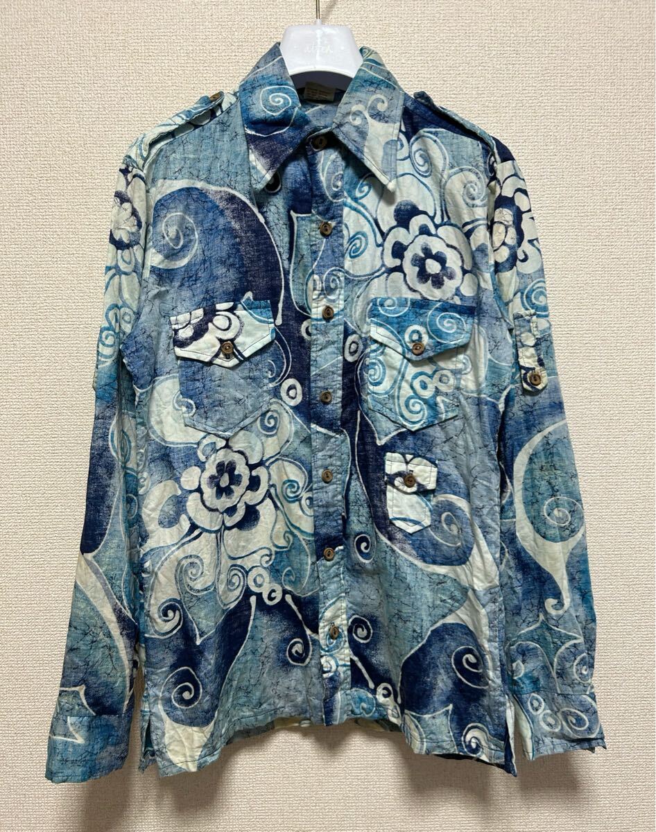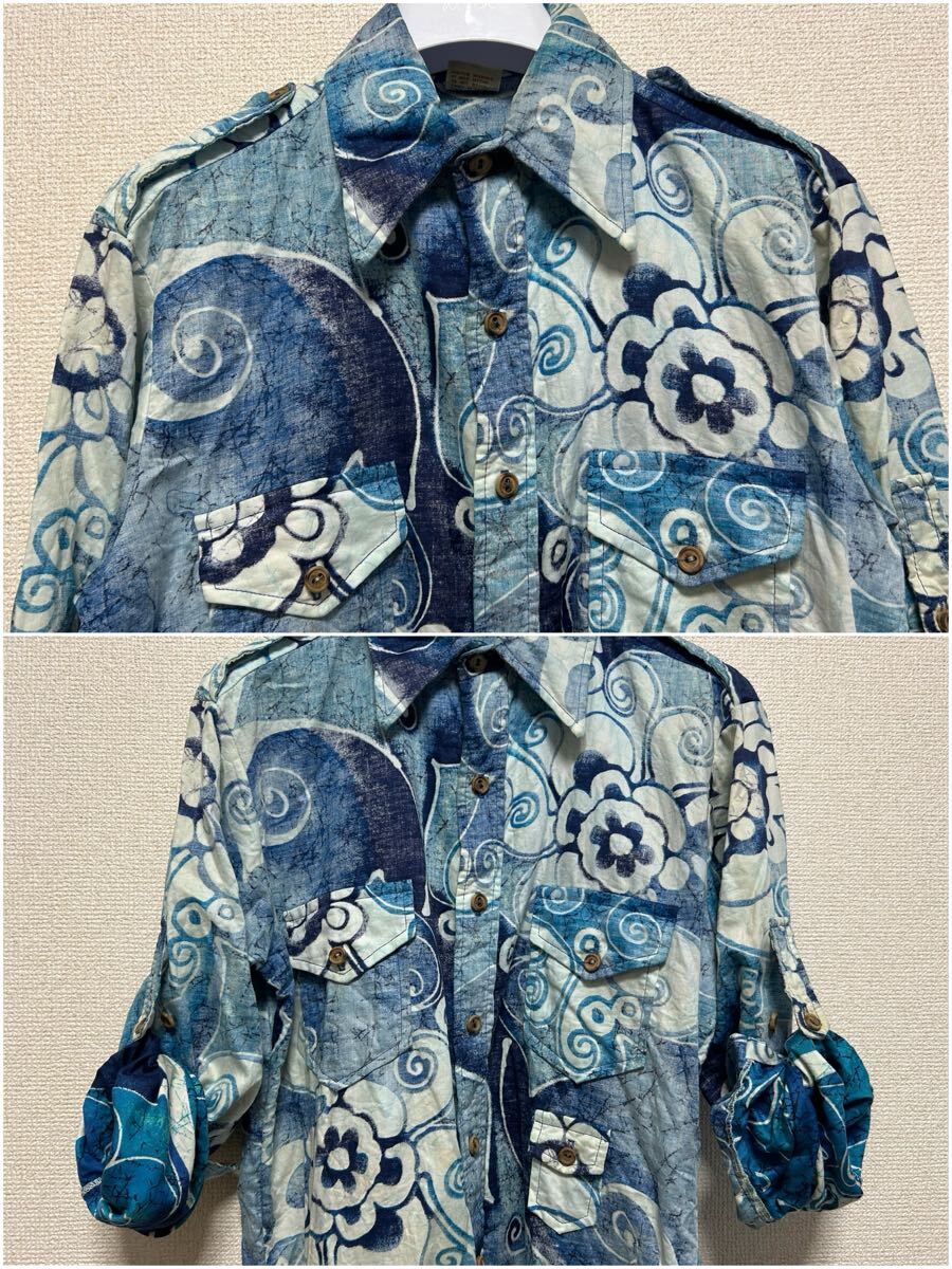70's USAヴィンテージ 総柄ハワイアンシャツ 長袖アロハシャツ サファリジャケット