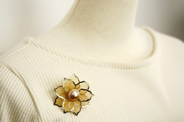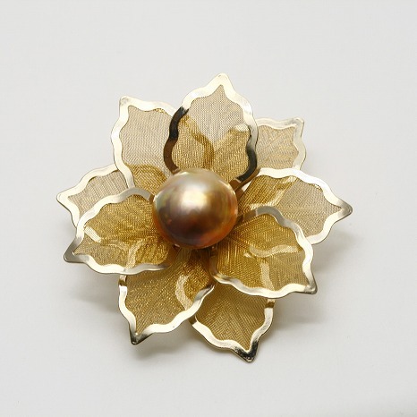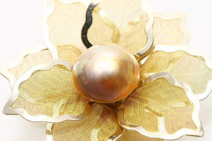 | ボリュームと輝きが魅力の真珠・マベパールブローチです。 見た目はボリュームがございますが, 軽量な作りになっていますので使い易さもグッドです。 大胆に神秘の真珠の輝きをお試し下さい。 | |