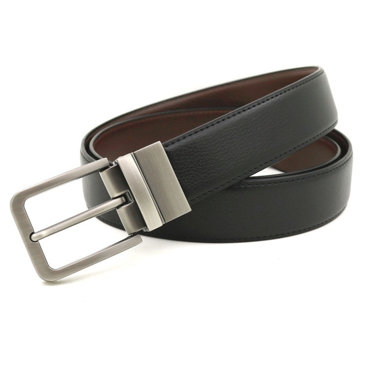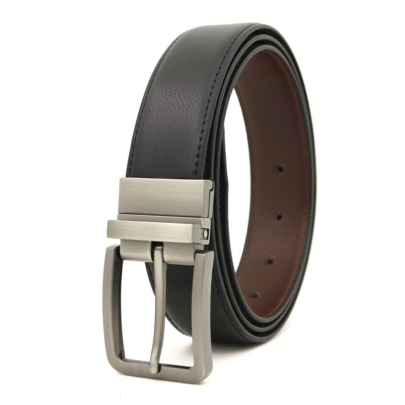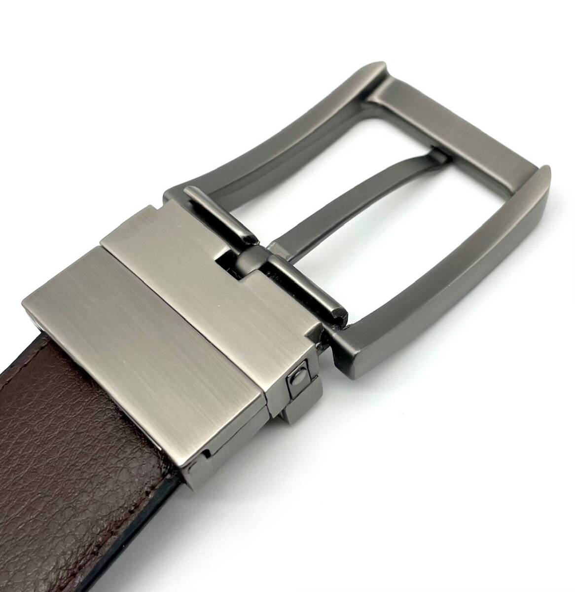 リバーシブル デザイン レザーベルト ◆ 本革 メンズ ブラック ブラウン 黒 茶 フリーサイズ 新品 未使用 ビジネス カジュアル 【PN221-9】