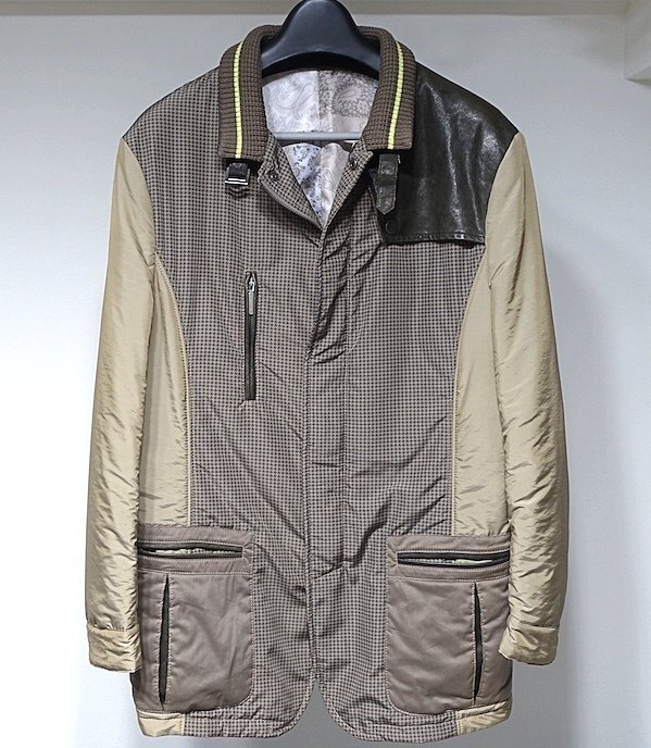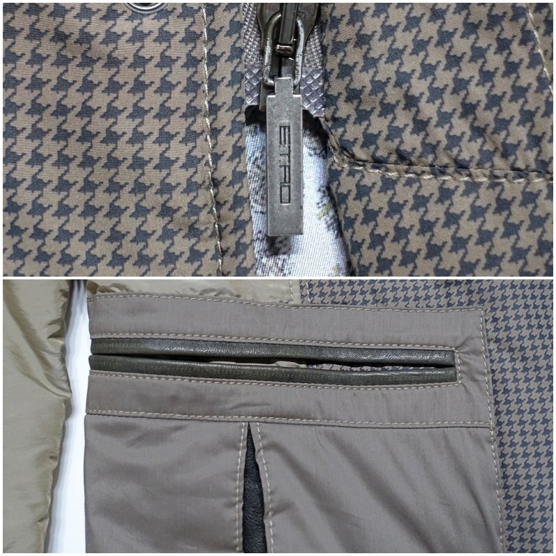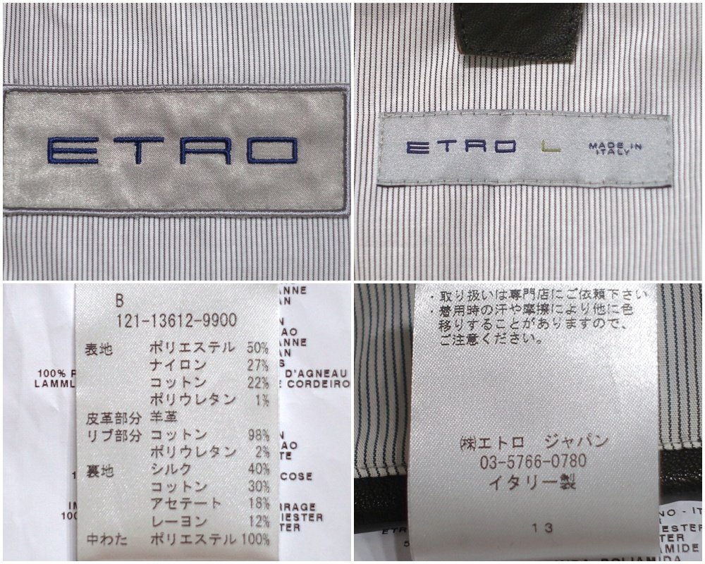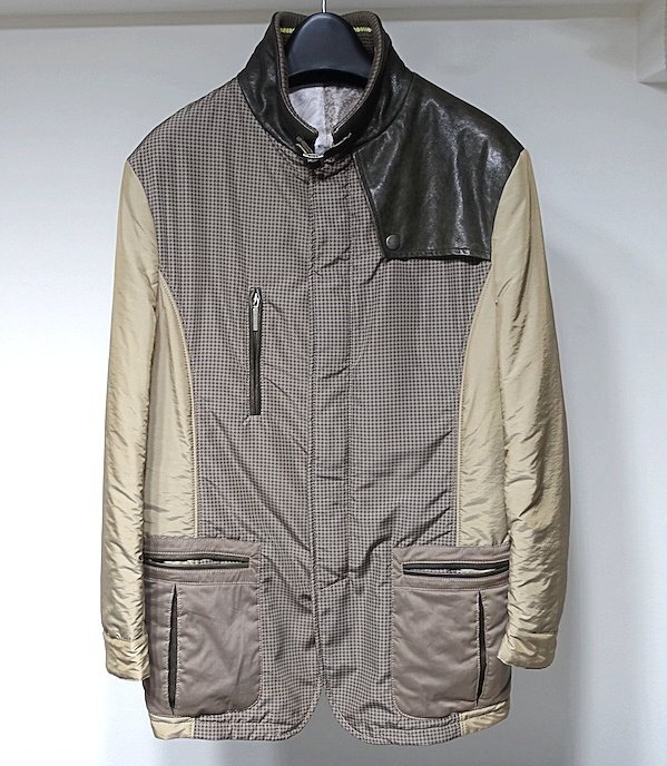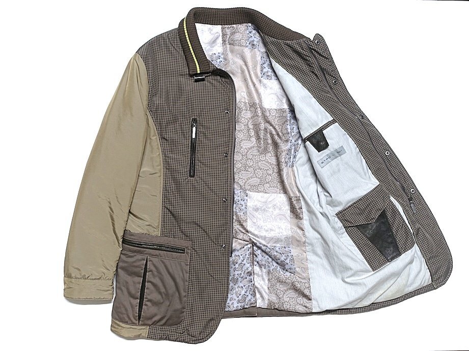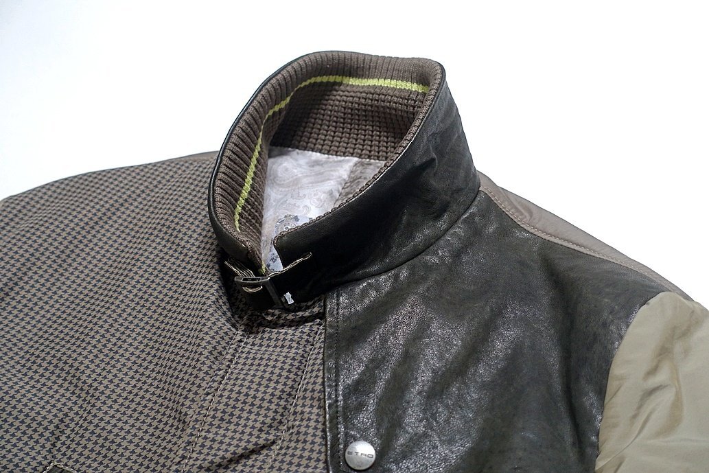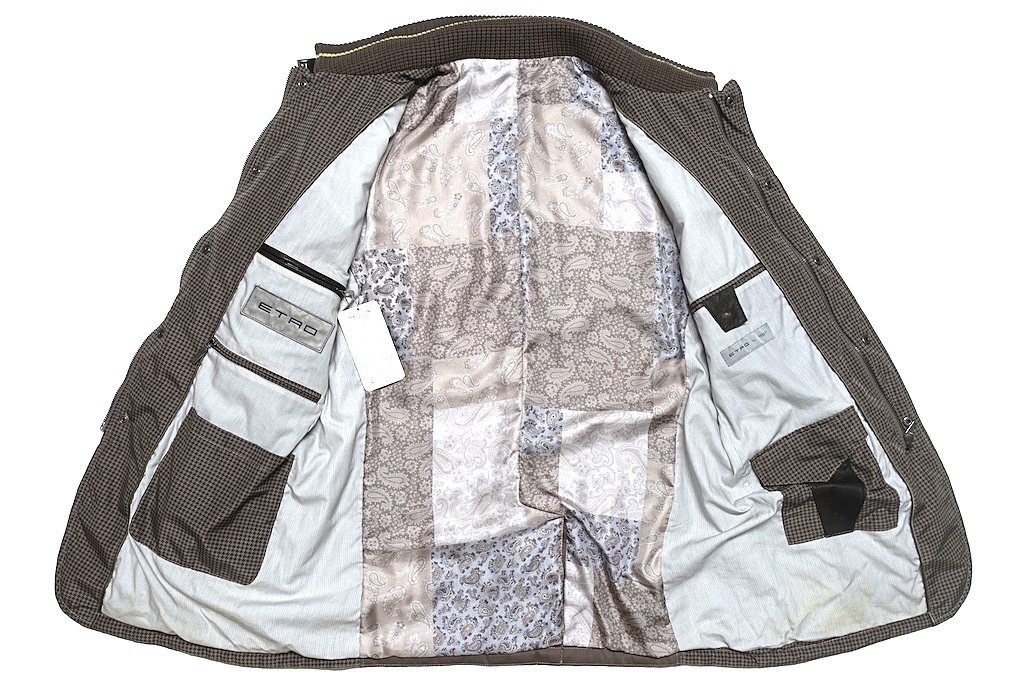 12SS 美品 ETRO エトロ ペイズリー柄裏地 ラムレザーディテール チェック切替 パファー ブルゾン メンズ L ジャケット コート