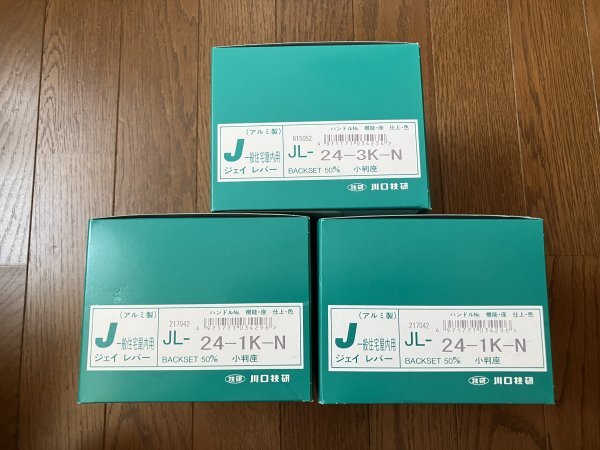 川口技研製、一般住宅屋内用のドアレバー3個セット(JL-24-1K-N2個+JL-24-3K-N1個)です。