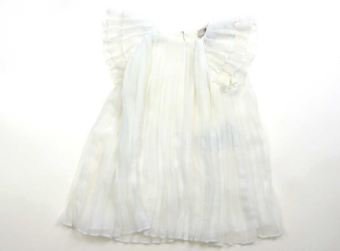 実際のサイズ表記は74cm。シフォン地のプリーツデザイン。コットンシャツ地の裏地付きです。裏地にはシワがありますが、表地は特に目立つ汚れはなくまだお使い頂けそうです。