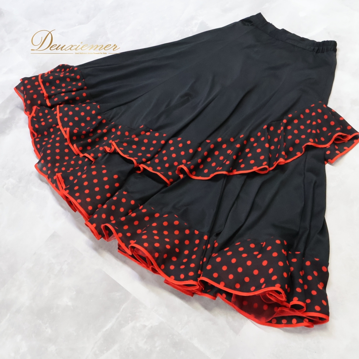 商品説明 | 【商品名】フラメンコ衣装 ファルダ スカート 【サイズ】表記無し 平置き実測:総丈約90cm、ウエスト約36cm ※実測の為、多少の誤差はご容赦願います 【仕様】 ・背面ファスナー仕様 ・ウエスト以外伸縮性有り ------------------------------------ 【ポイント】 ▽prima boutique プリマブティック ▽赤×黒のポップな色味 ------------------------------------ 【撮影時使用トルソー:女性用トルソー9号(一般的に使用されるサイズです)】 トルソーサイズ詳細 肩幅約37cm、バスト約88cm、ウエスト約66cm、ヒップ約89cm |